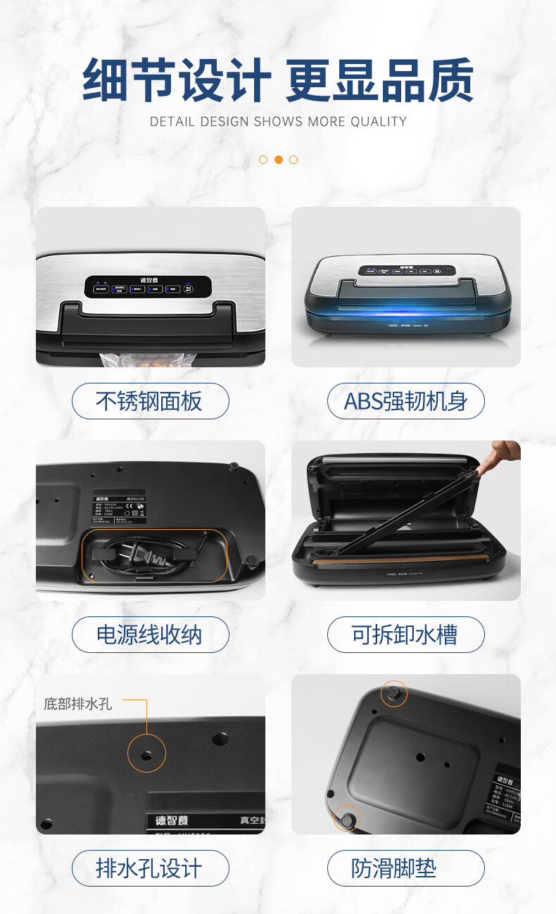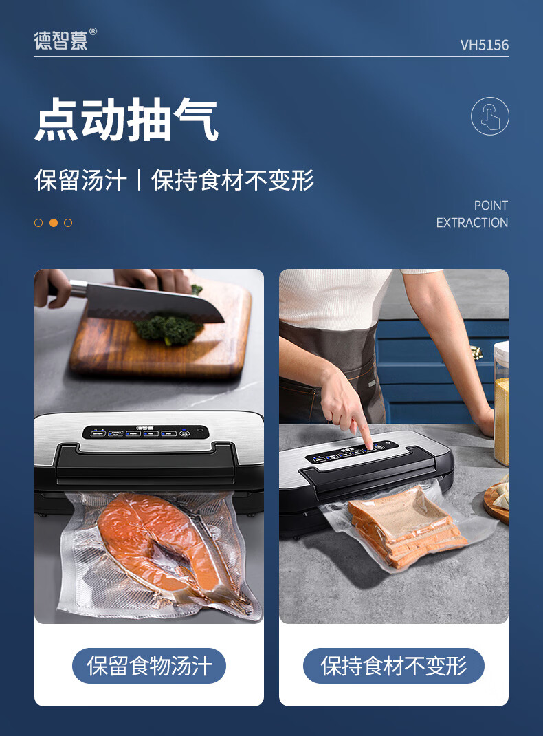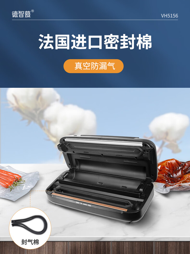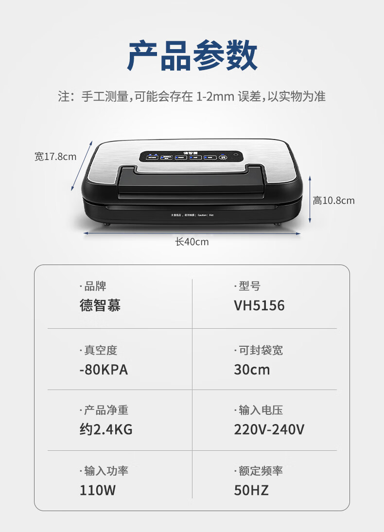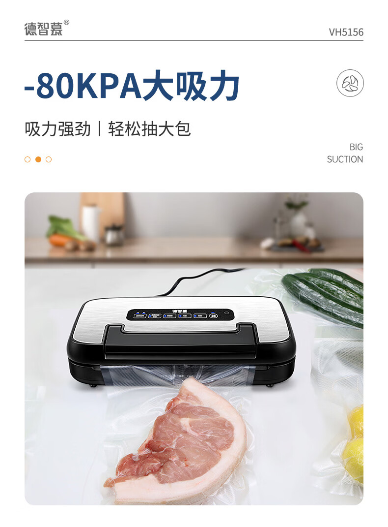 Dezhimu 80KPA fully automatic vacuum sealing machine high-power wet and dry packaging machine sealing vacuum all-in-one machine household commercial compressor comes with cutting knife storage bag warehouse top model 5188-90KPA free 3 rolls 28CM*3M
