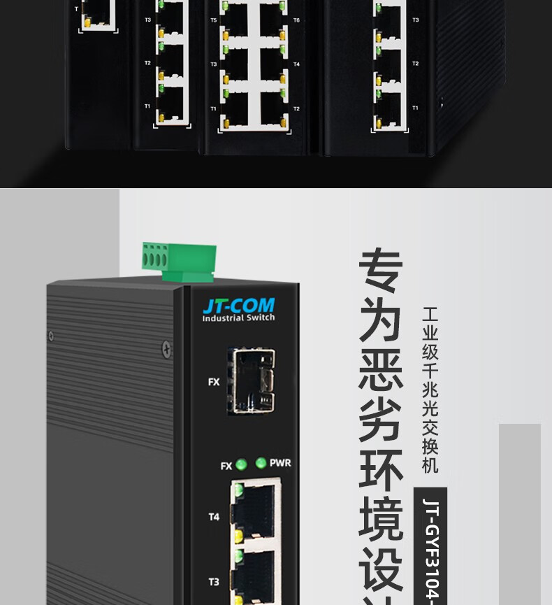 Industrial grade switch 5 ports 1 optical 1/2/4/8 electrical 2 optical guide rail Gigabit SFP fiber optic transceiver DC24V power supply 1 Gigabit 4 optical 8 electrical SFP switch