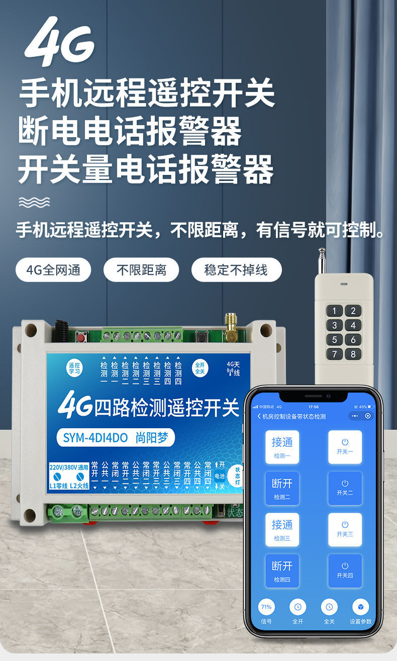 4G Shangyangmeng mobile phone remote control switch 220V380V intelligent network wireless remote control water pump power module 4G one way detection and one way control power outage remote control