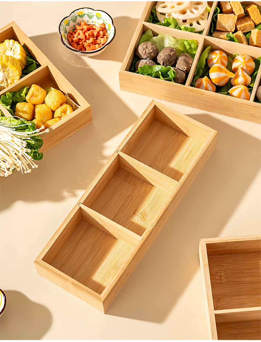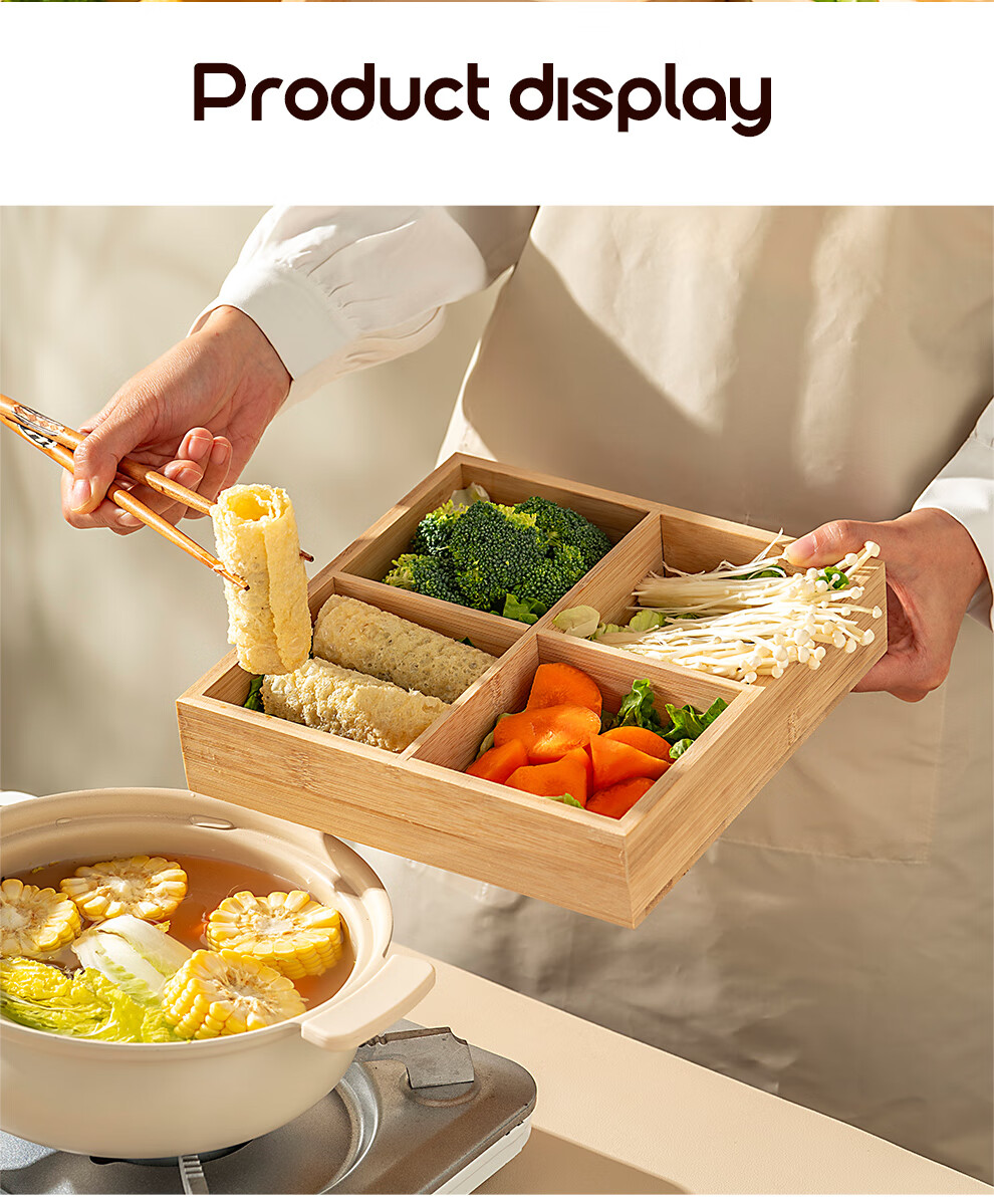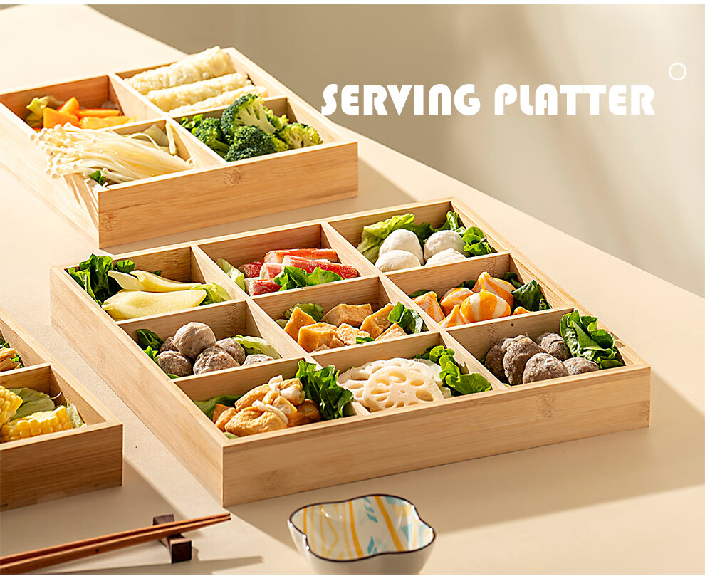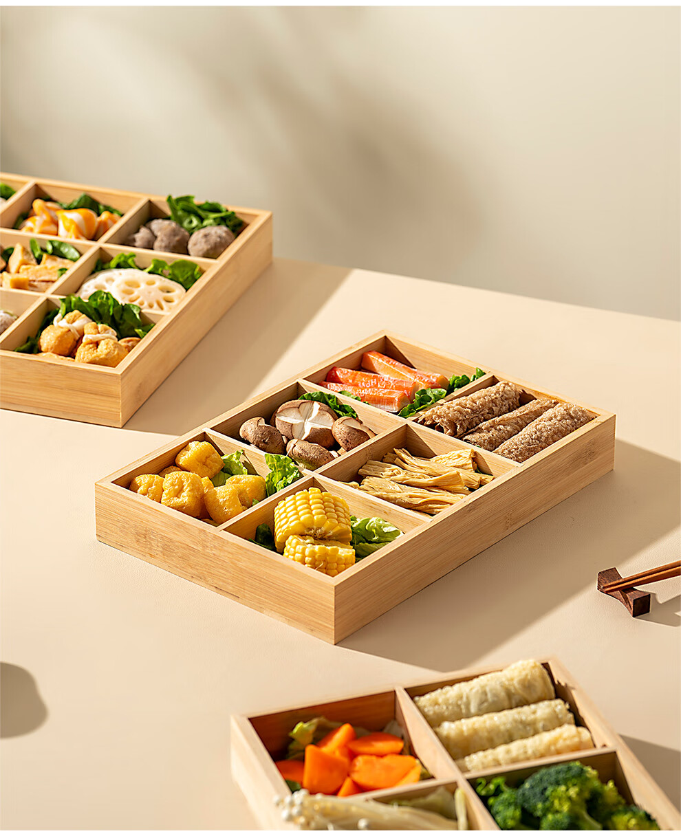 Onlycook Japanese-style bamboo hot pot vegetable plate Jiugongge platter divided vegetable preparation plate barbecue ingredients tableware meal tray Jiugongge bamboo vegetable preparation plate