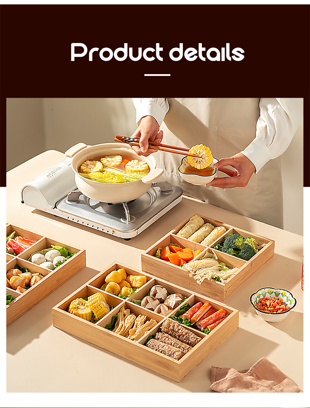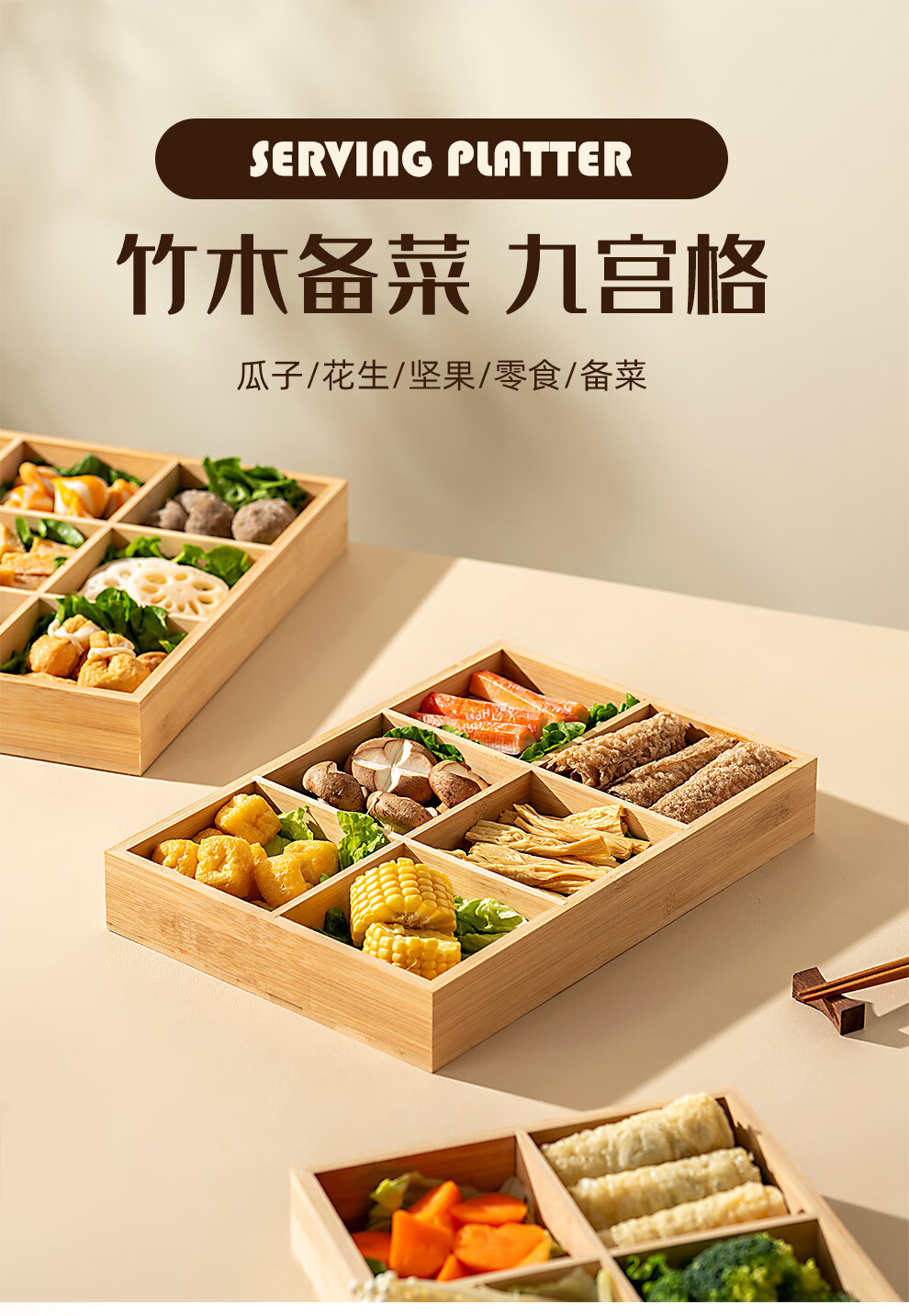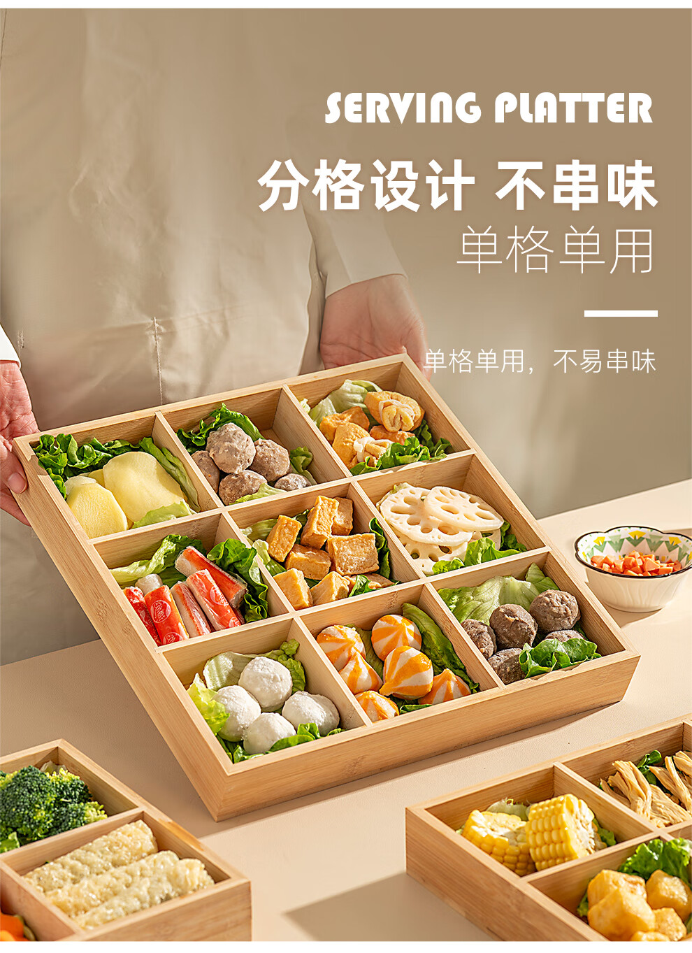 Onlycook Japanese-style bamboo hot pot vegetable plate Jiugongge platter divided vegetable preparation plate barbecue ingredients tableware meal tray Jiugongge bamboo vegetable preparation plate