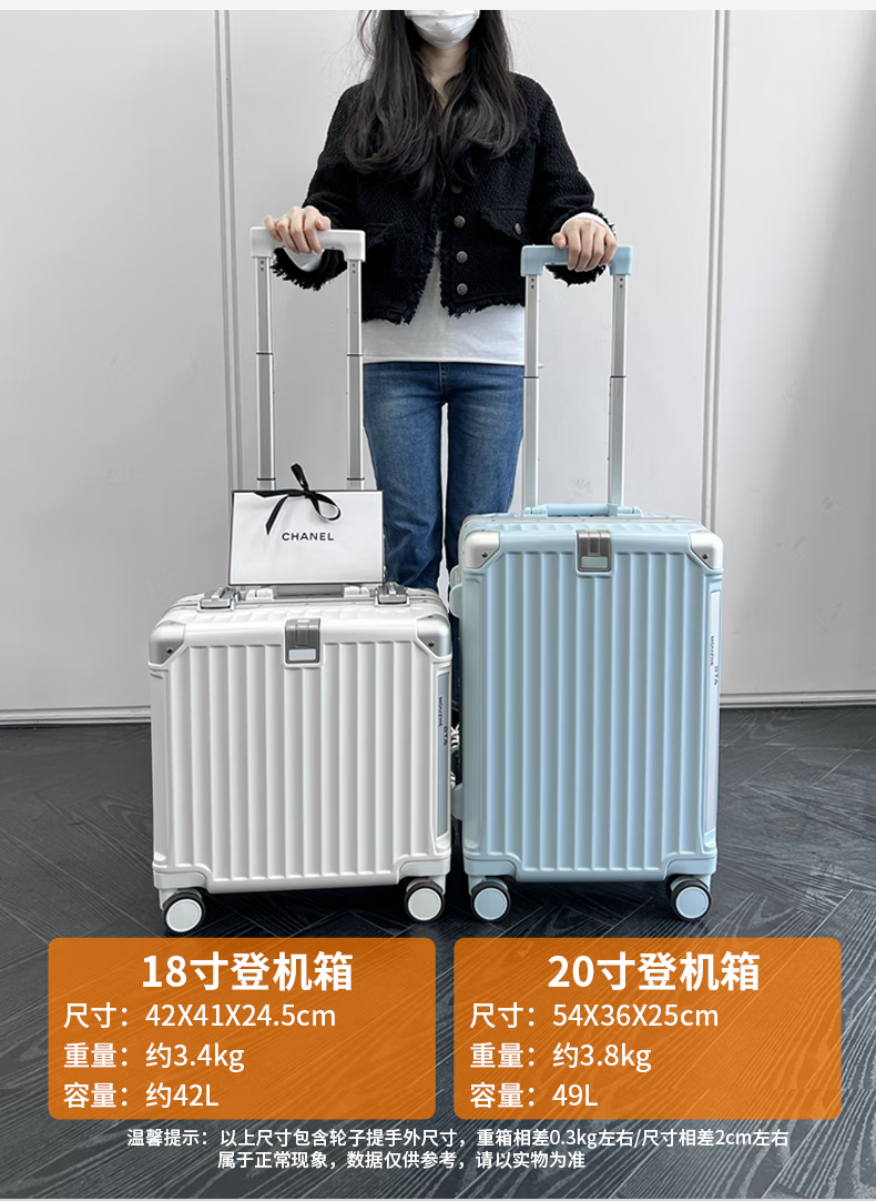 OULUNCHI high-end brand luggage for men and women, new trolley case, men's small boarding case, password box, lightweight travel case, women's silver 20 inches