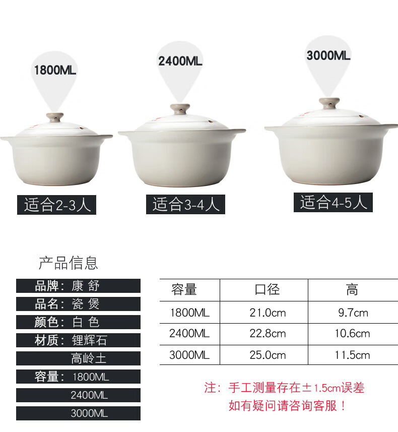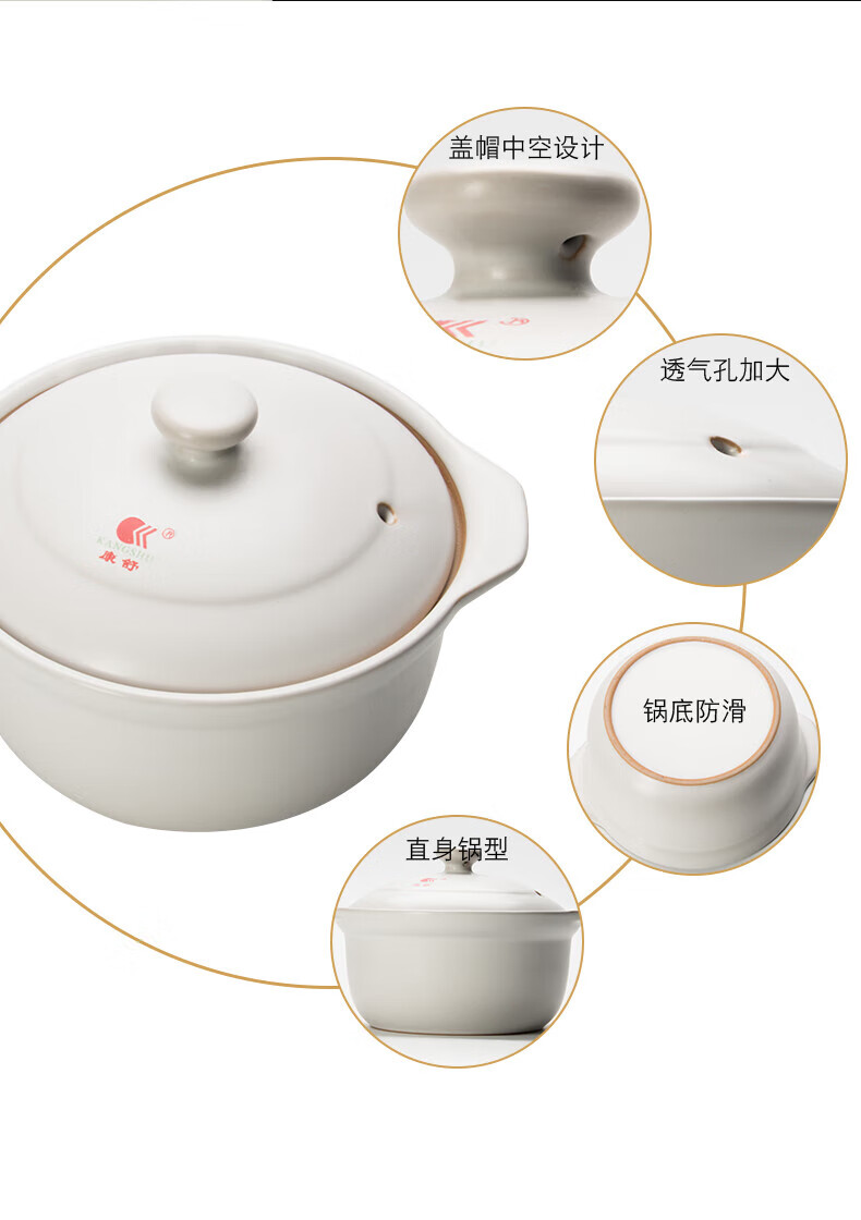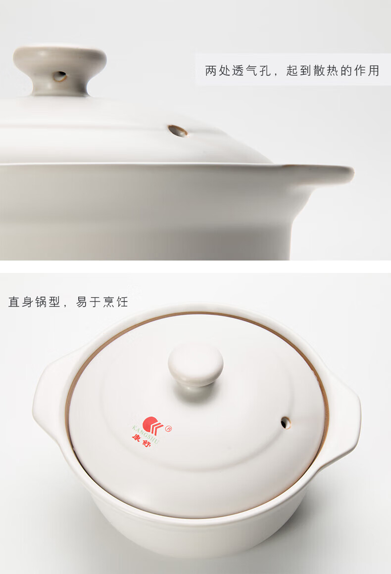 Kangshu (KANGSHU) large high-temperature resistant ceramic pot for household use, open fire soup pot, porridge stew pot, stone pot, gas-fired casserole, Chinese stew pot (recommended for 4-5 people) 3L