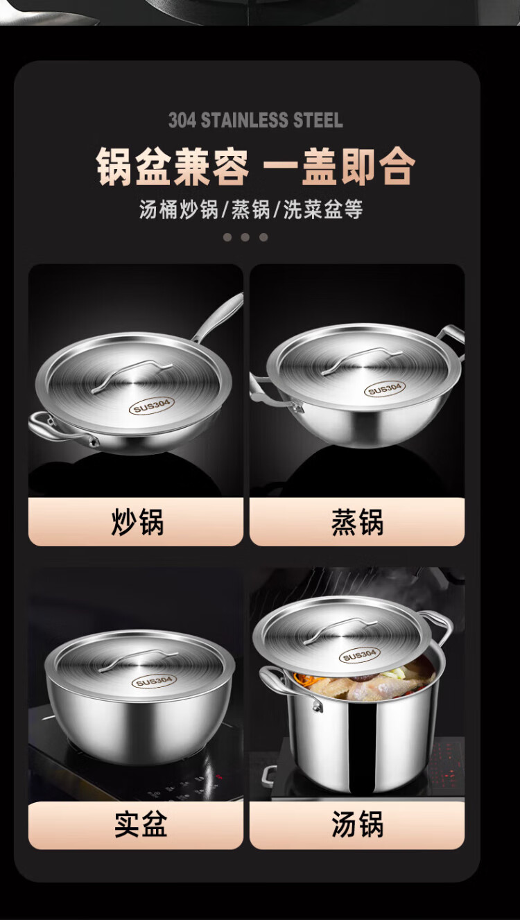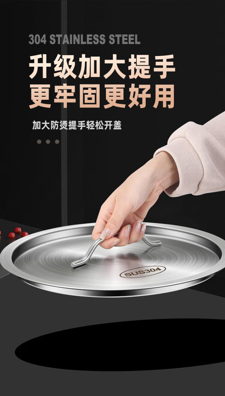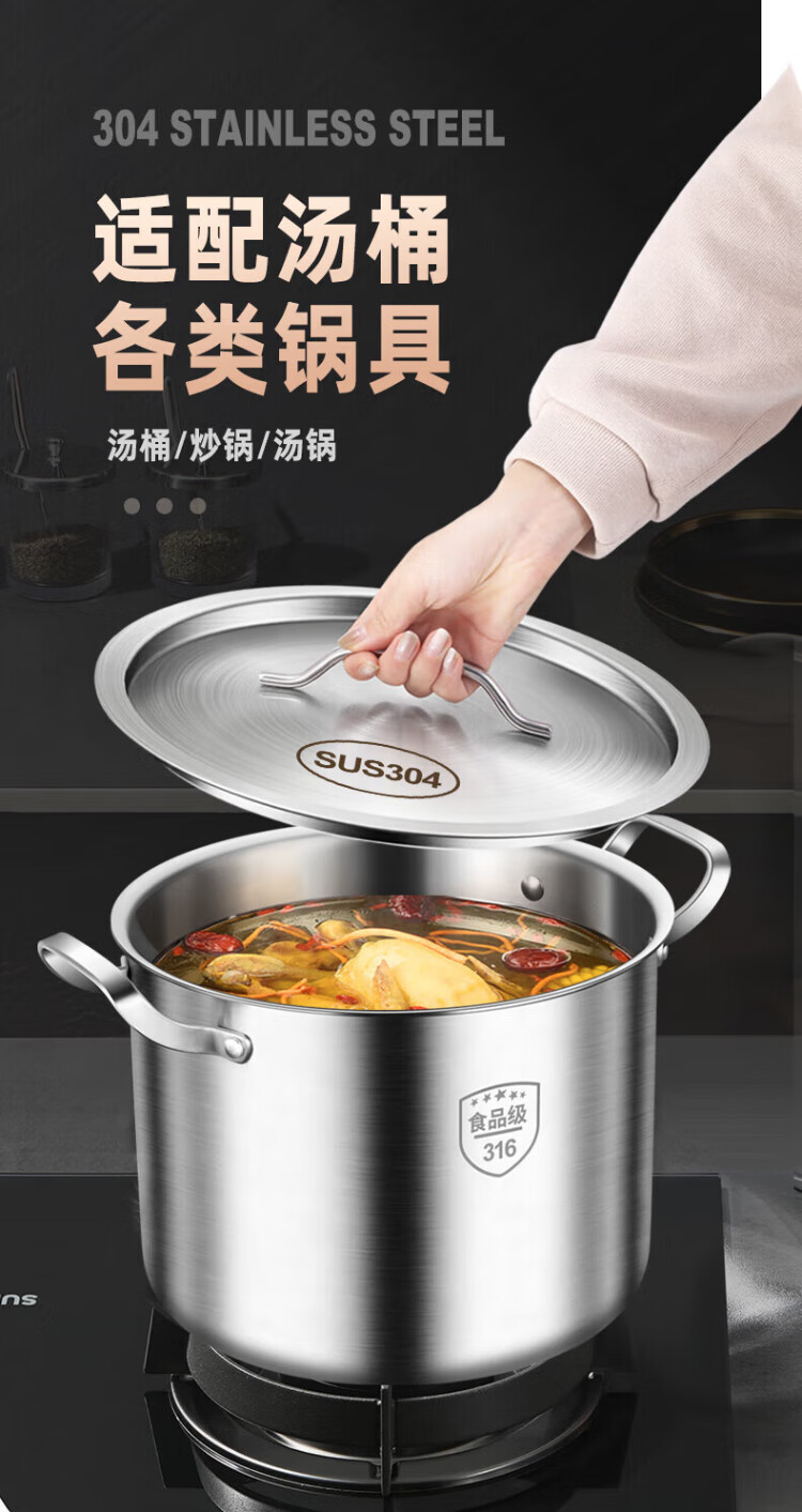 Clang soup bucket lid 304 stainless steel thickened round flat lid large pot lid large bucket lid cylinder pot lid sold separately lid inner diameter 35CM extra thick 304 stainless steel 35cm