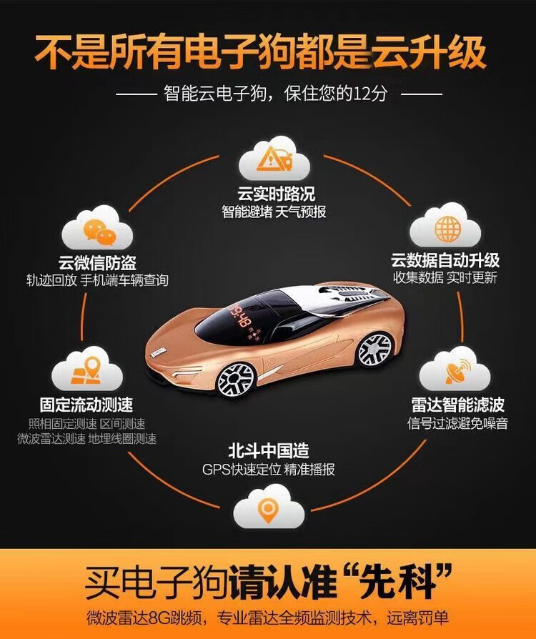 Xianke Beidou 2026 new electronic dog cloud automatically upgrades speed radar car safety warning device wireless gold 12V car for one-click upgrade hunting dog
