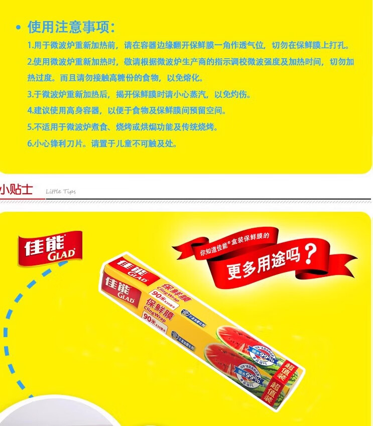 Canon (GLAD) Canon plastic wrap large bowl microwave economical refrigerator fruit and vegetable cutter W300N (90 meters 30 cm) two boxes
