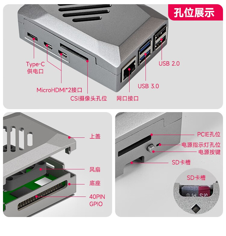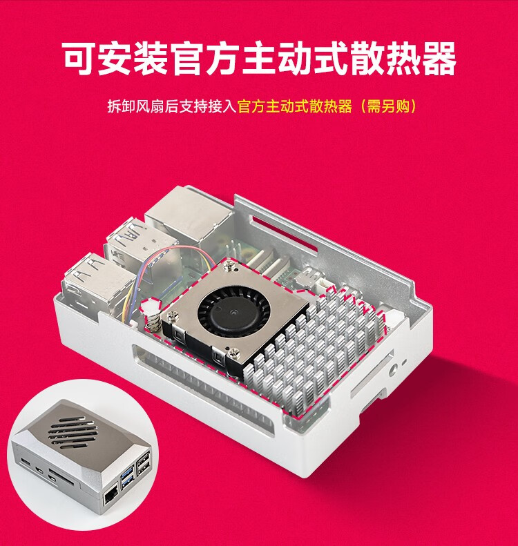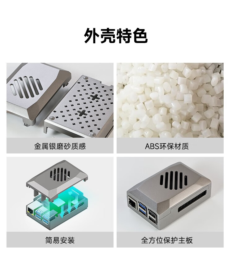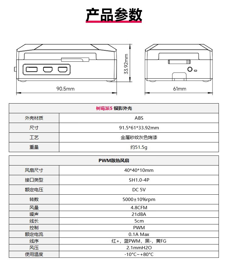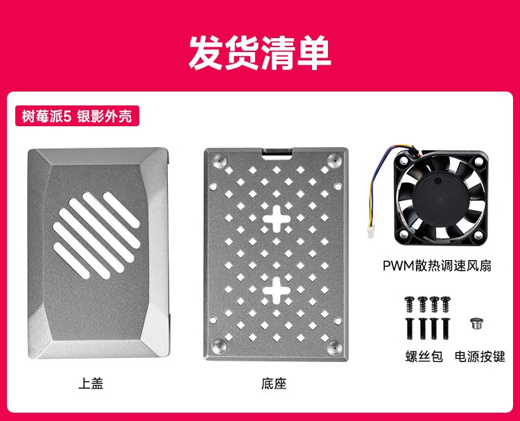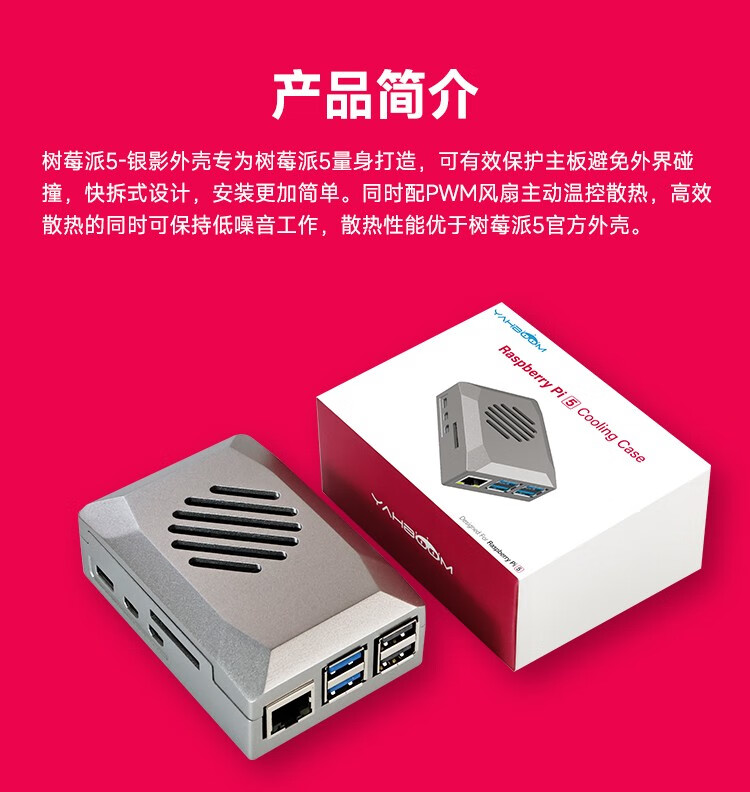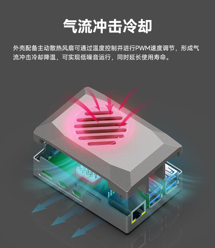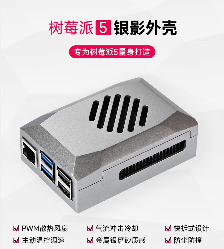 Yabo Intelligent Raspberry Pi 5th Generation Pi5 Shell ABS Protection Box Chassis PWM Cooling Speed Control Fan Plastic Imitation Aluminum Alloy Raspberry Pi 5 Silver Shadow Shell (with PWM Speed Control Fan)