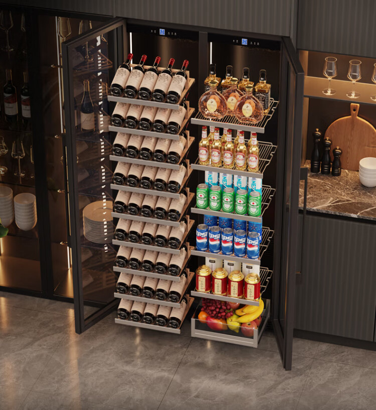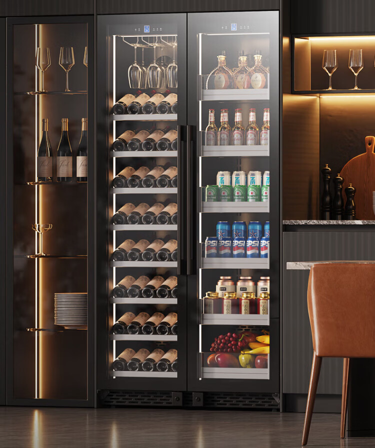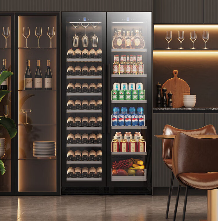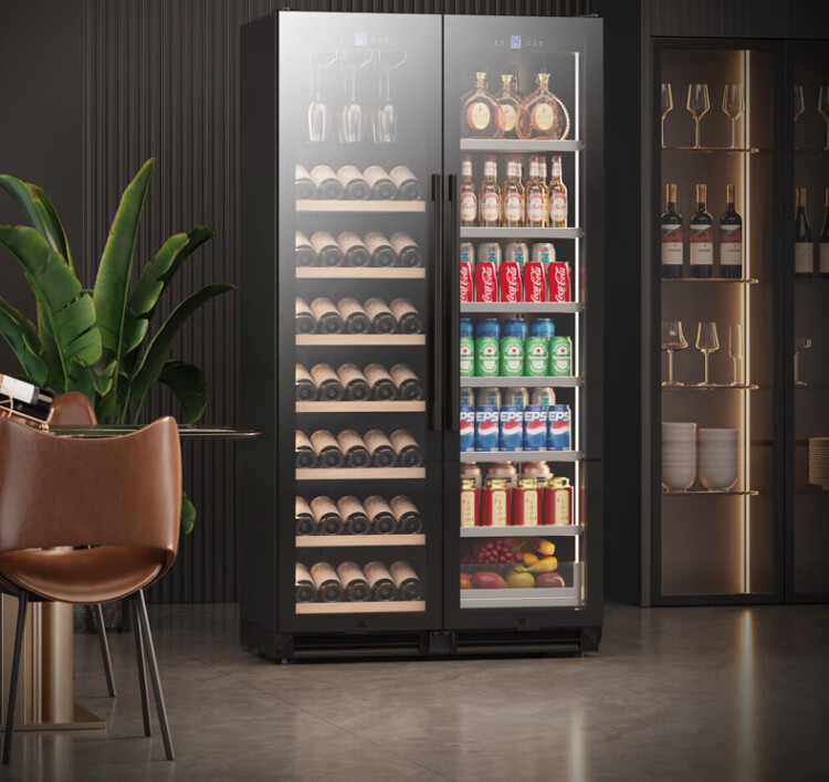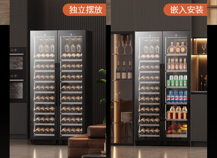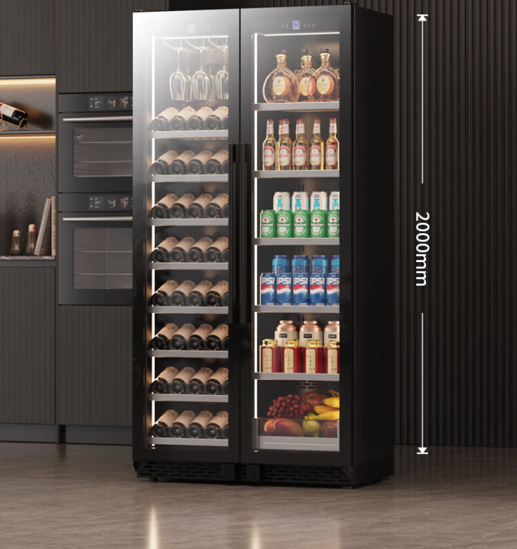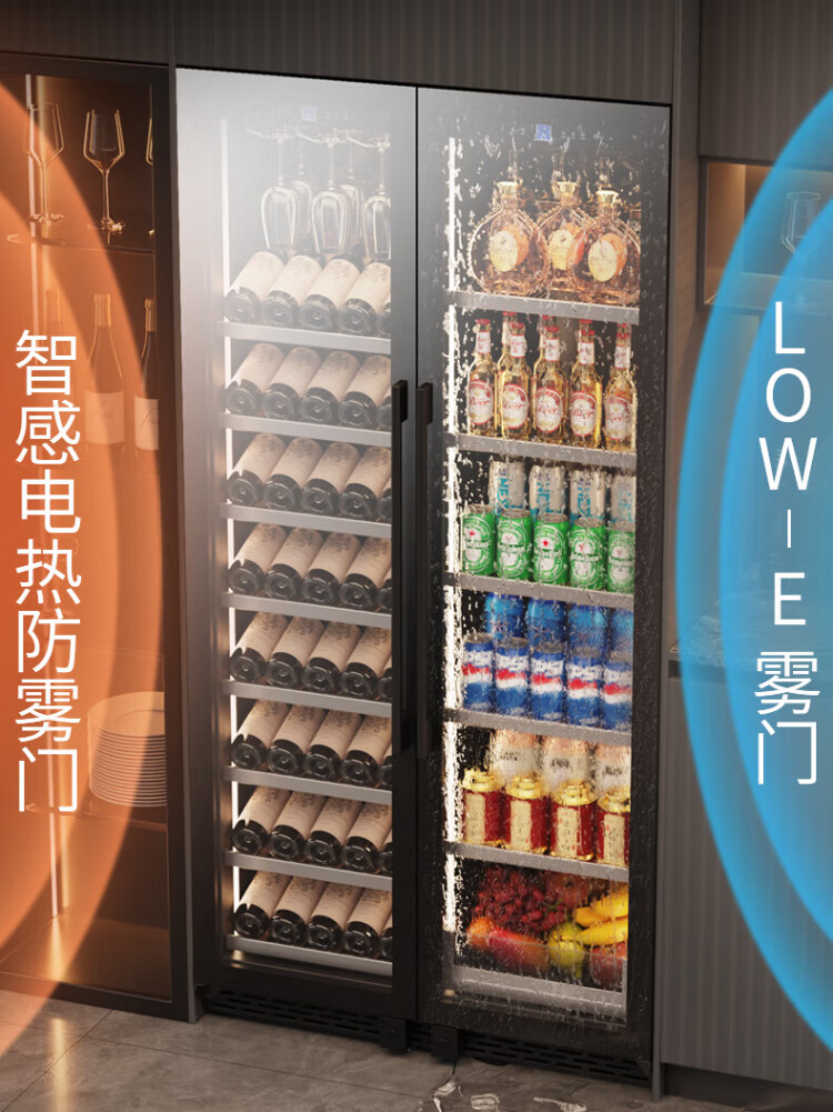 BAIKAILUN double-door thermostatic wine cabinet with double-door door ultra-thin and can be embedded in air-cooled frost-free thermostatic wine cabinet office household tea beverage liquor wine fruit preservation refrigerated display cabinet 2 meters dual temperature red wine + ice bar 121 bottles thin section