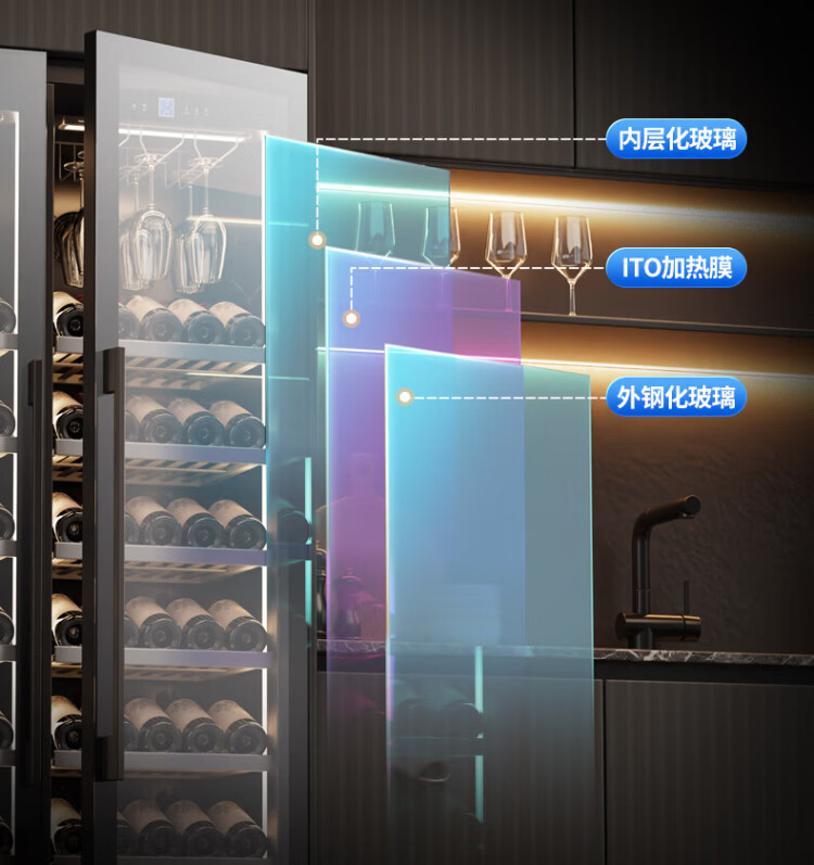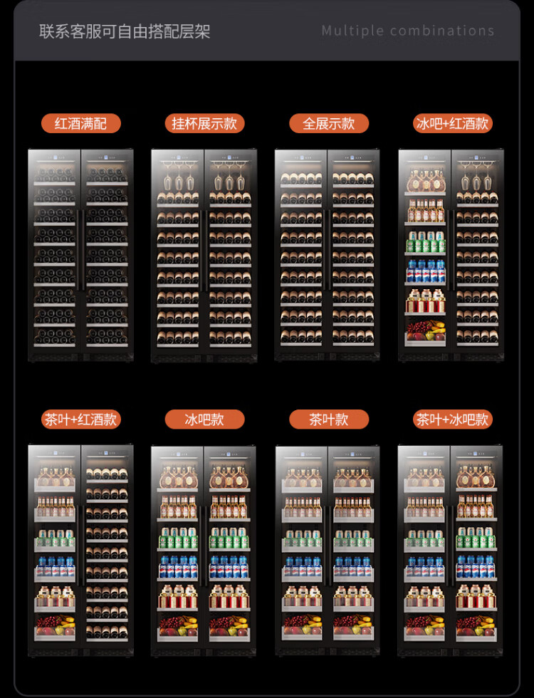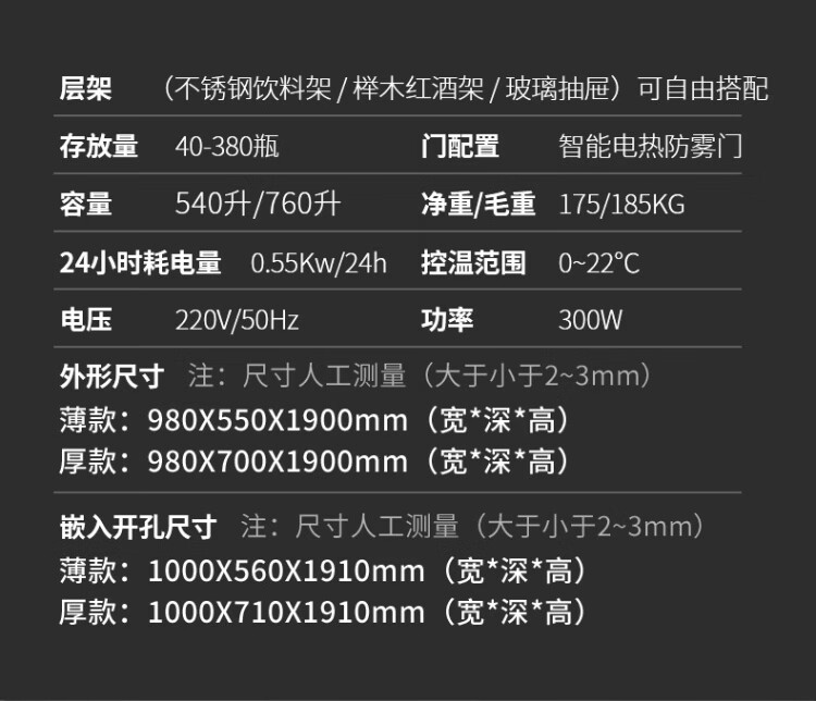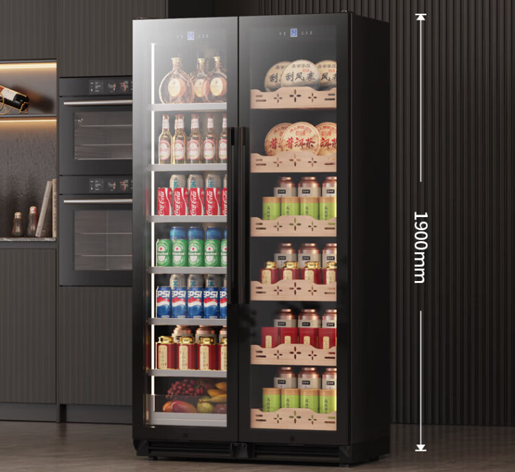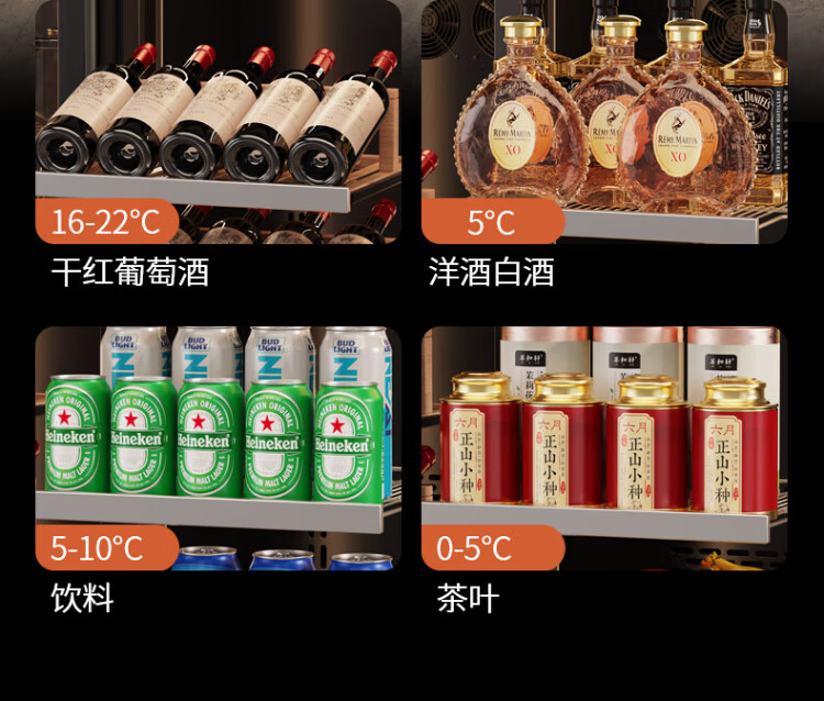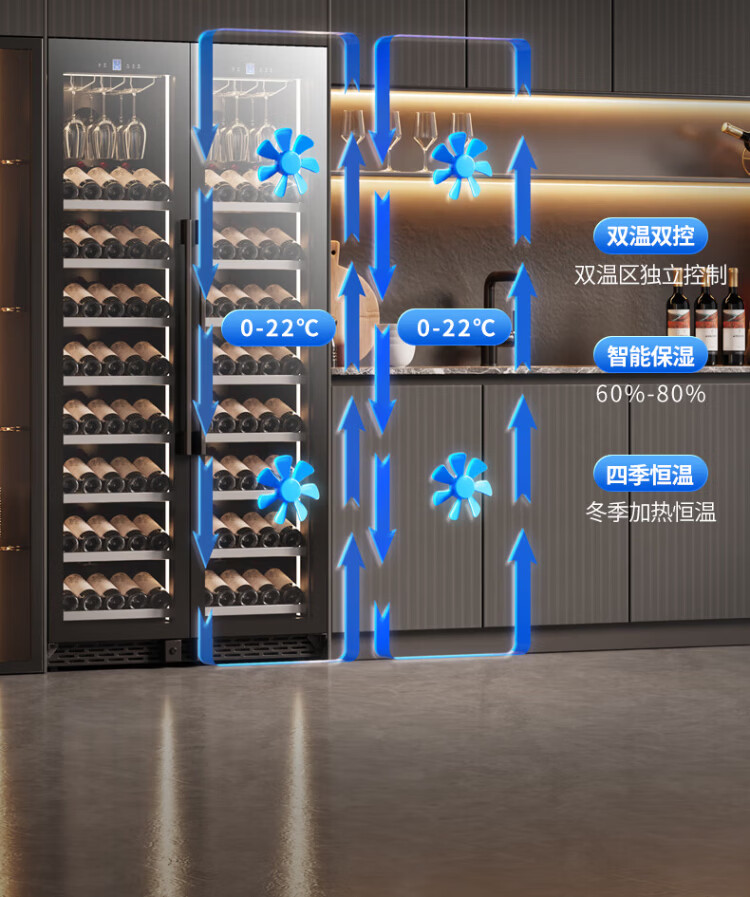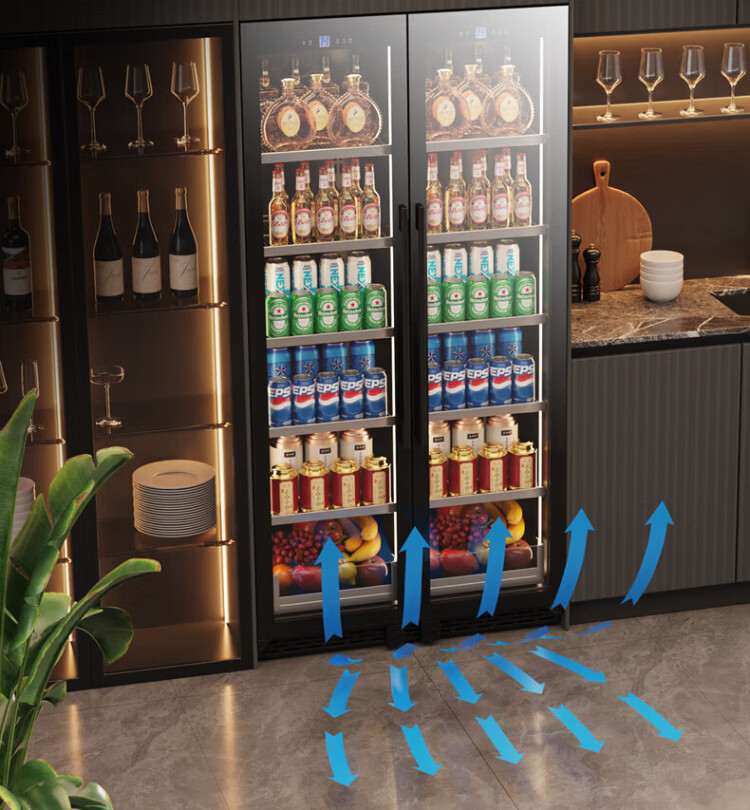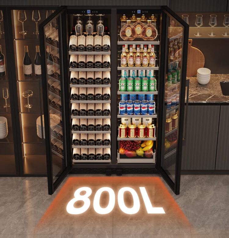 BAIKAILUN double-door thermostatic wine cabinet with double-door door ultra-thin and can be embedded in air-cooled frost-free thermostatic wine cabinet office household tea beverage liquor wine fruit preservation refrigerated display cabinet 2 meters dual temperature red wine + ice bar 121 bottles thin section