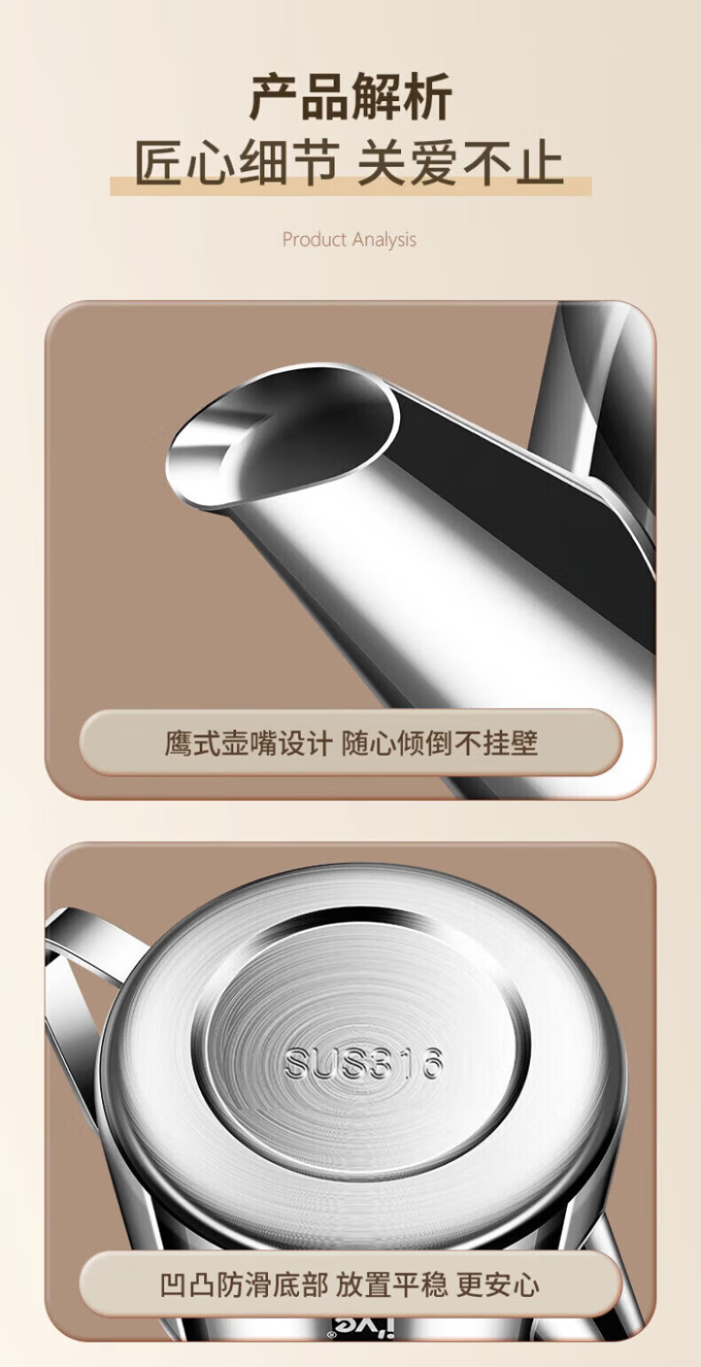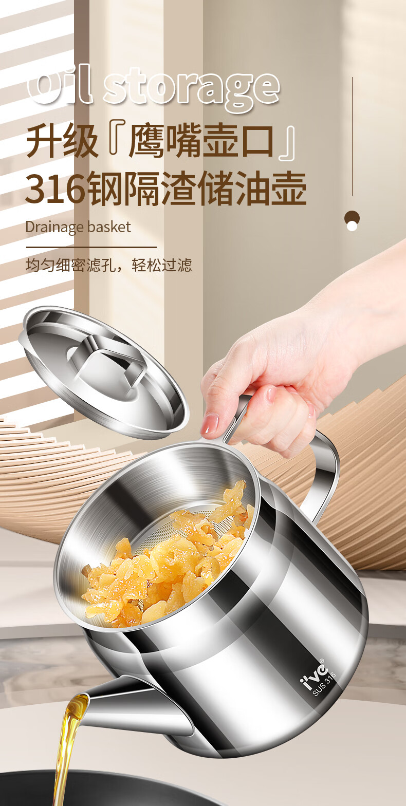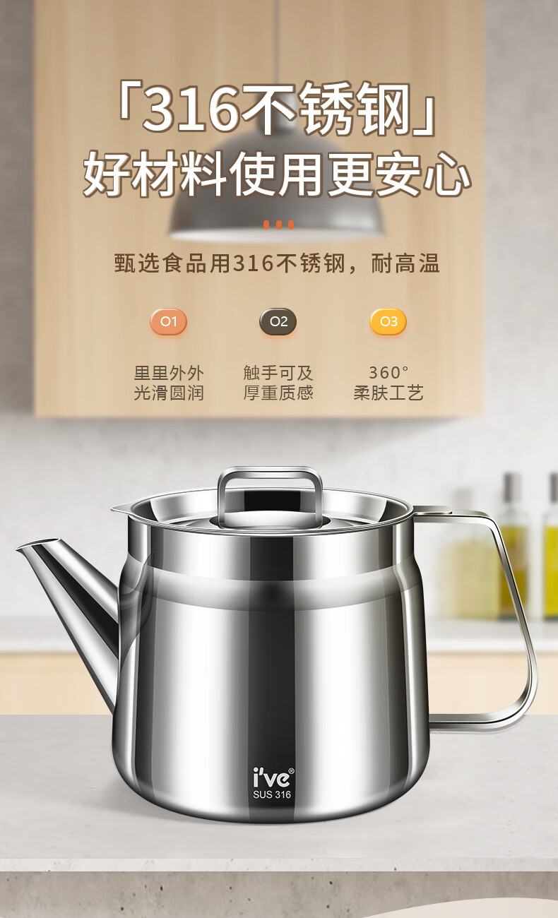 I VE Germany 316 stainless steel oil kettle filter oil kettle large capacity household filter oil residue anti-leakage oil storage kettle 1500ml small 316 stainless steel oil filter kettle