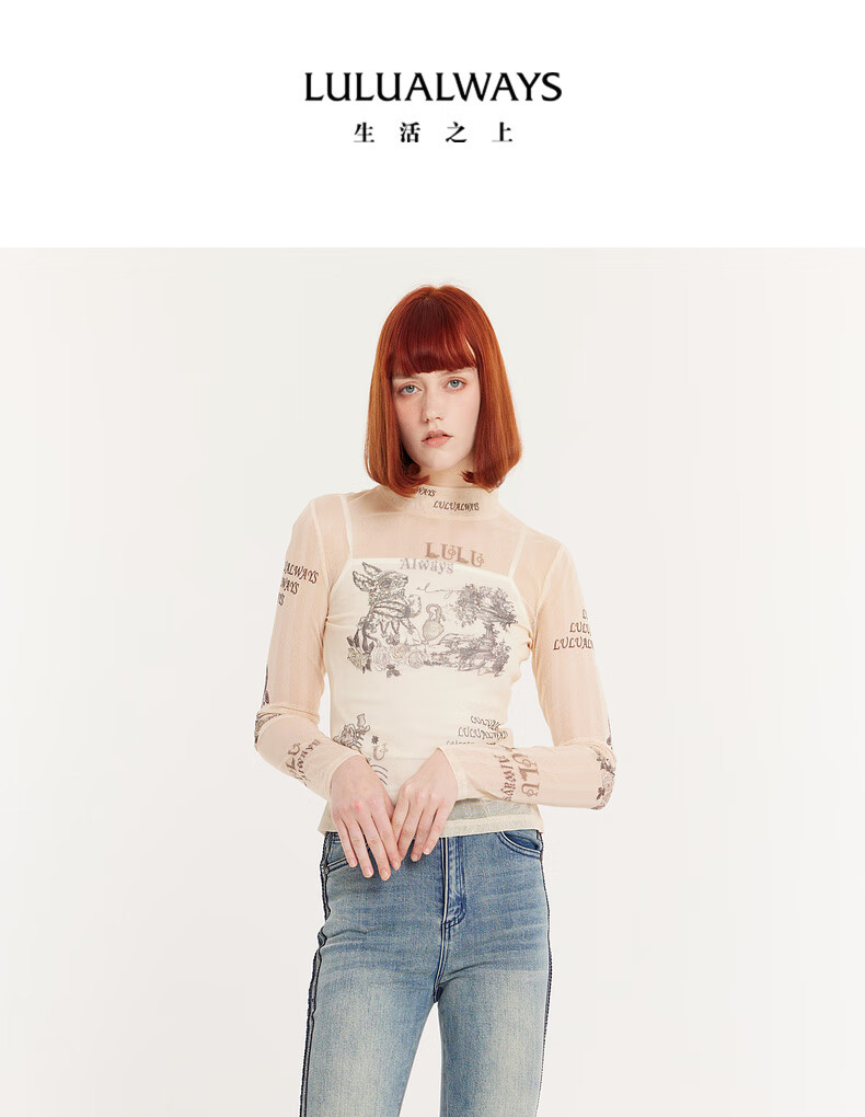 LULUALWAYS I Love Lulu 24 New Simple Basics Versatile Thin Short Slim Fit Bottoming Shirt Beige XL