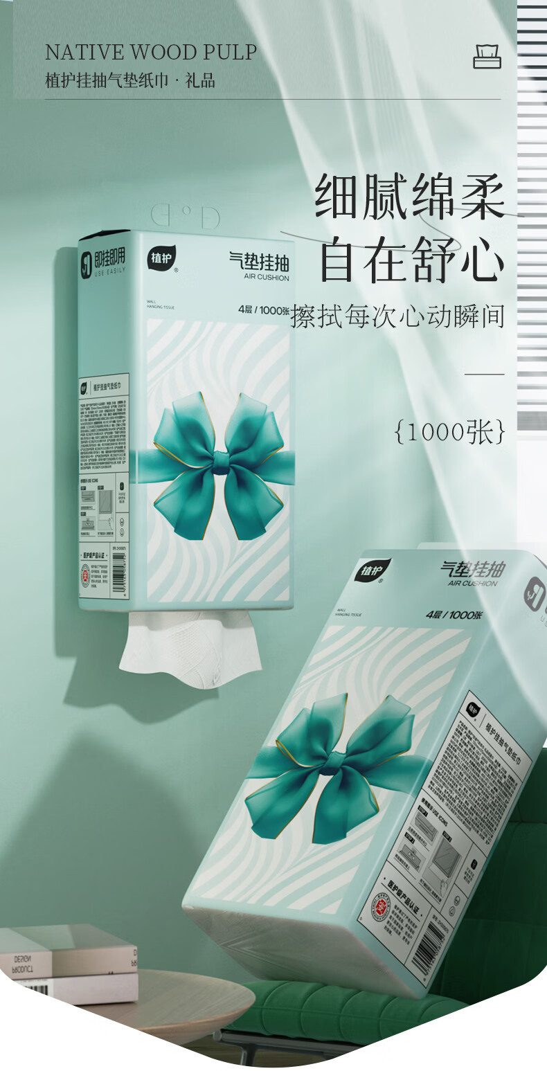 Plant protection hanging tissue paper, facial tissue, hanging toilet paper tissue, hand wiping paper, enlarged - blessed to 4 layers, 1280 sheets * 6 bags + 1 hook