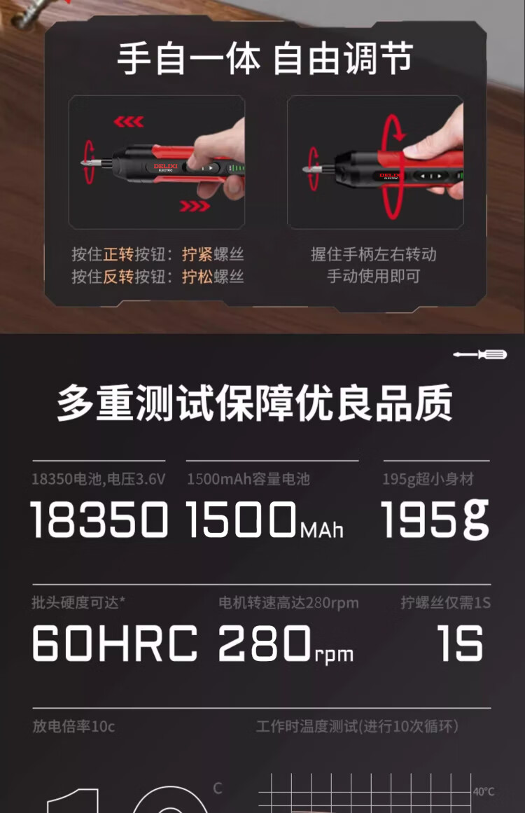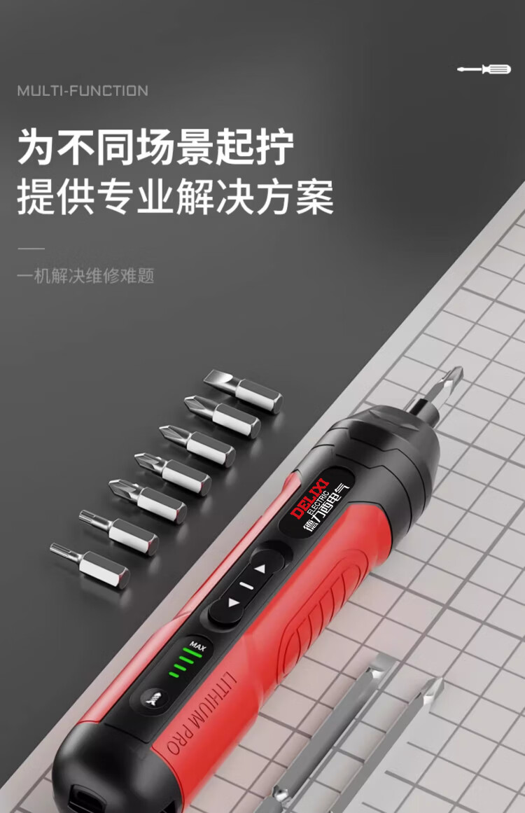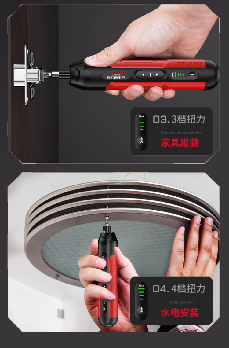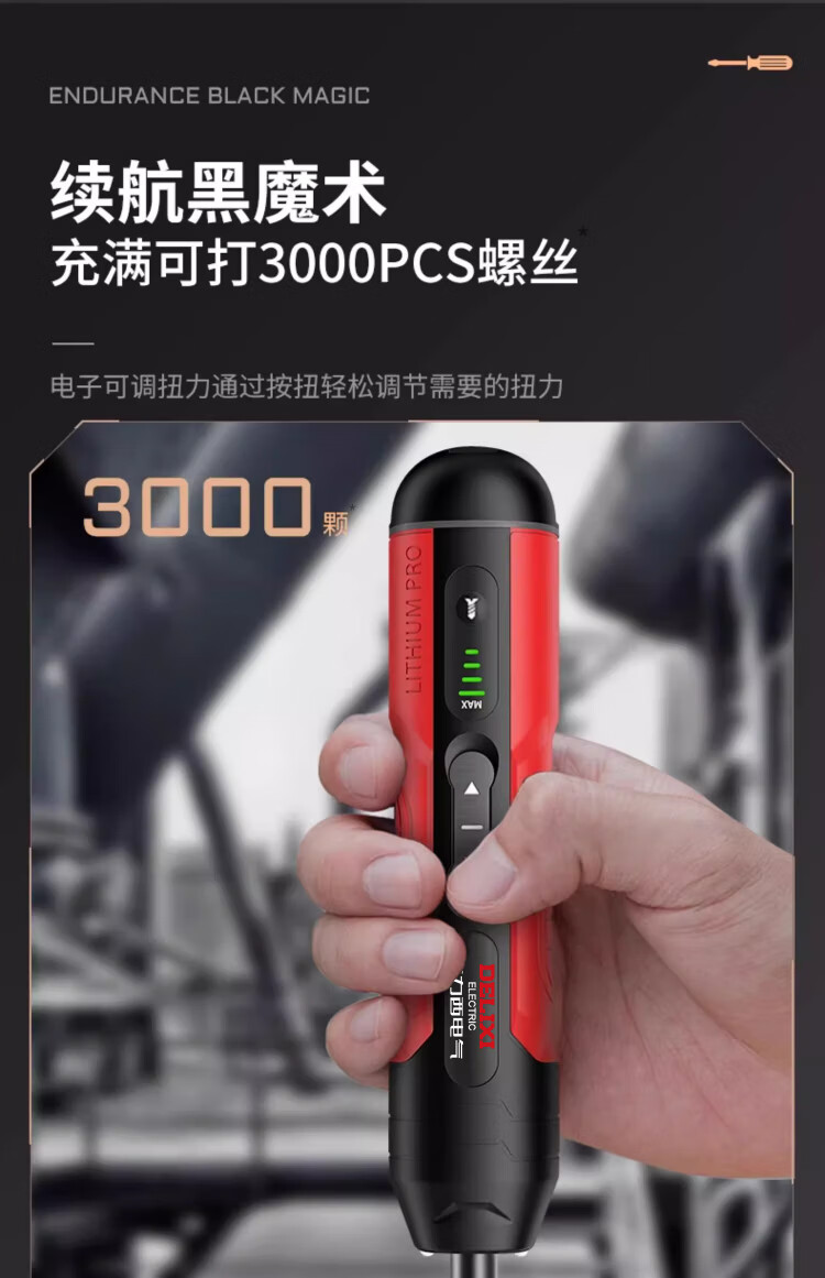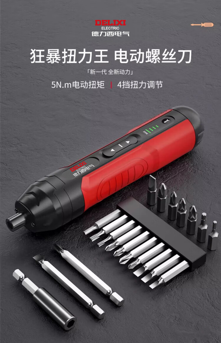 Delixi electric screwdriver rechargeable household electric drill screwdriver small mini screwdriver tool set super torque 4-speed adjustment 10NM 32-piece set