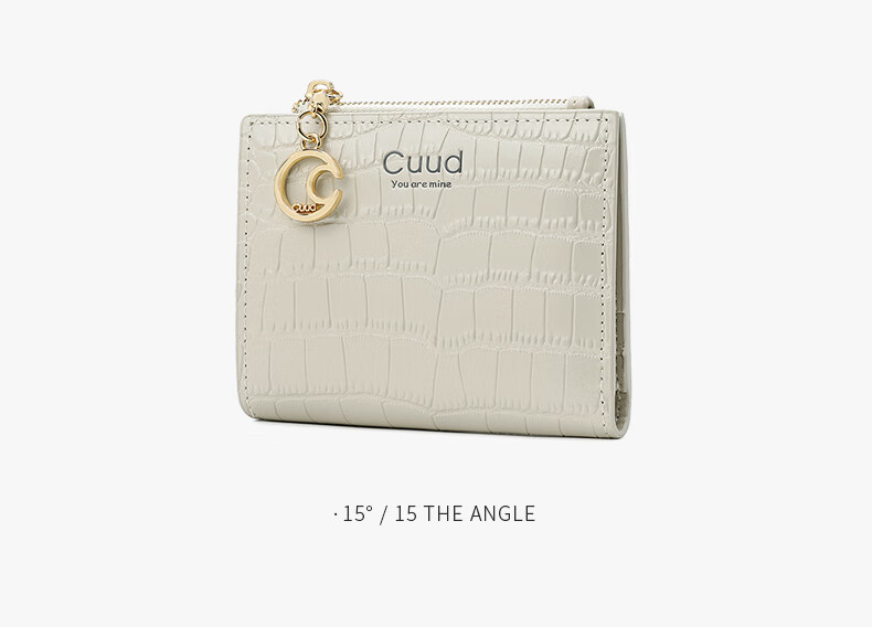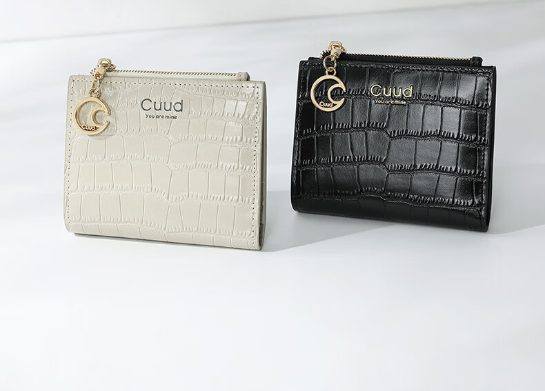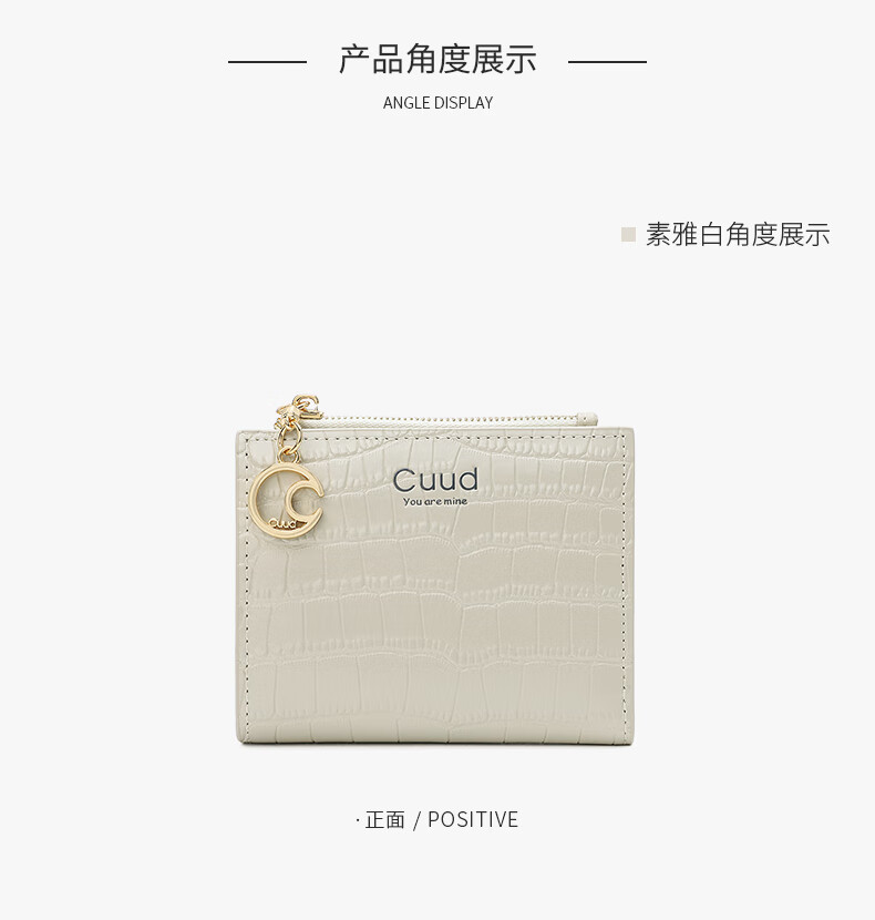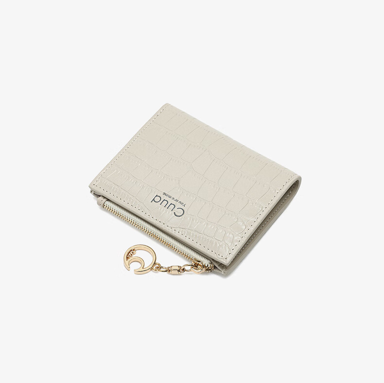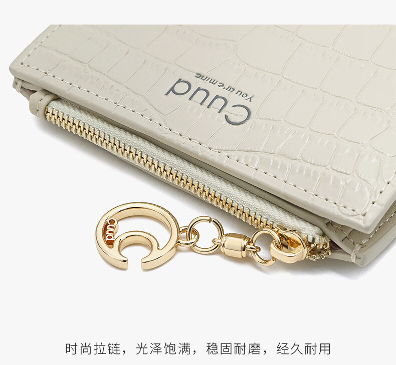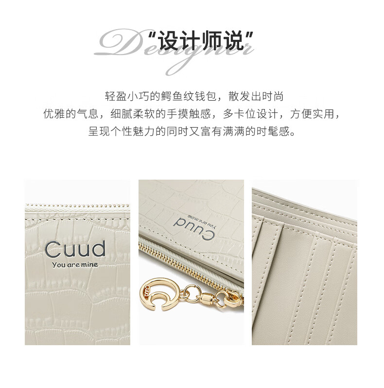Cuud leather wallet women's new retro crocodile pattern card holder short women's coin purse New Year's Valentine's Day gift elegant white