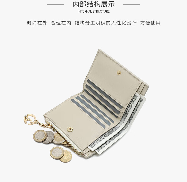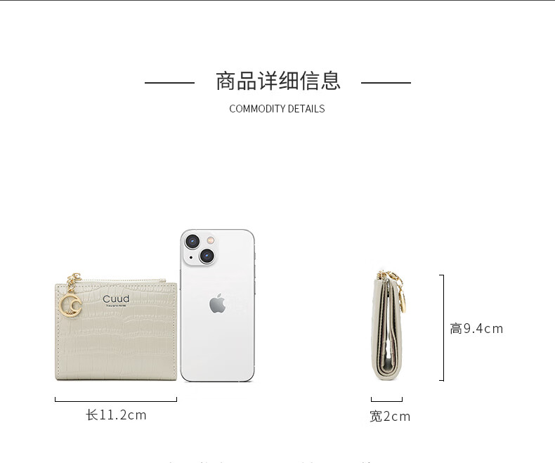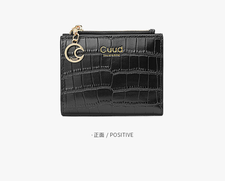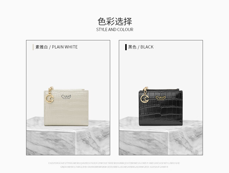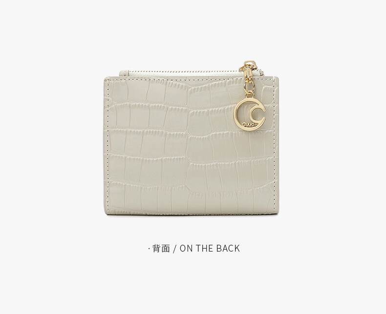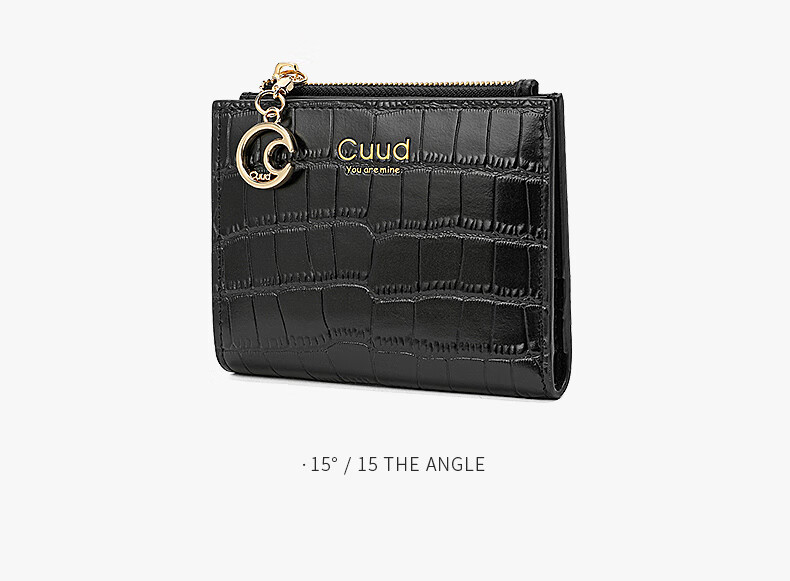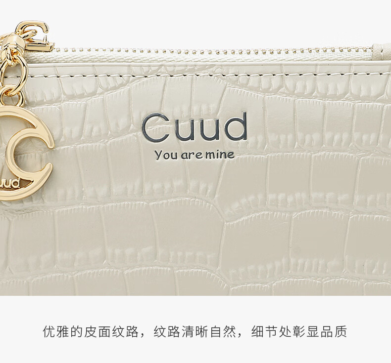 Cuud leather wallet women's new retro crocodile pattern card holder short women's coin purse New Year's Valentine's Day gift elegant white