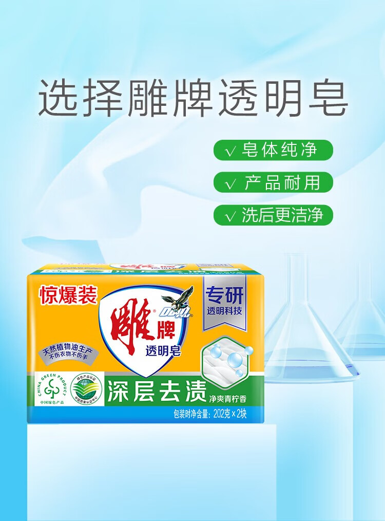 Diaolai Laundry Soap Home Pack Stain Remover Soap Household Lime Scented Transparent Soap Old Soap Affordable Fresh Household Stocking Affordable Pack 202g*2 Pieces (Deep Stain Remover)