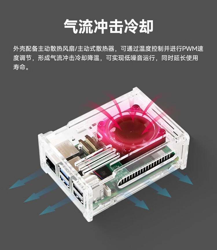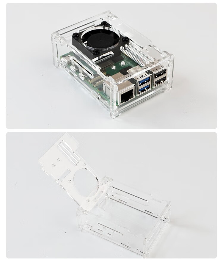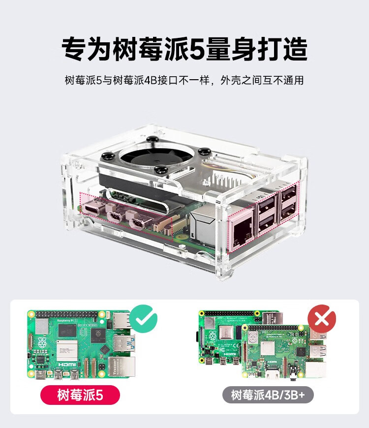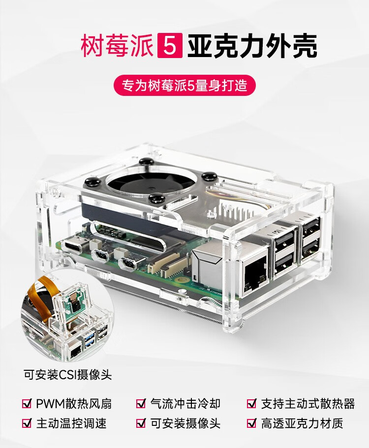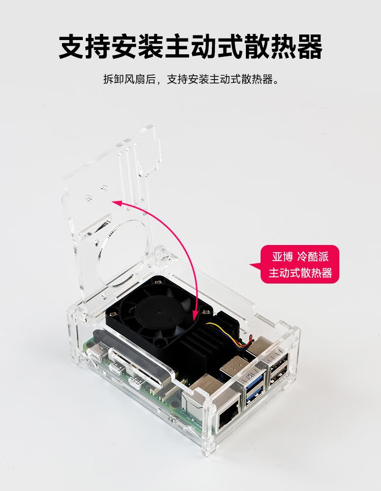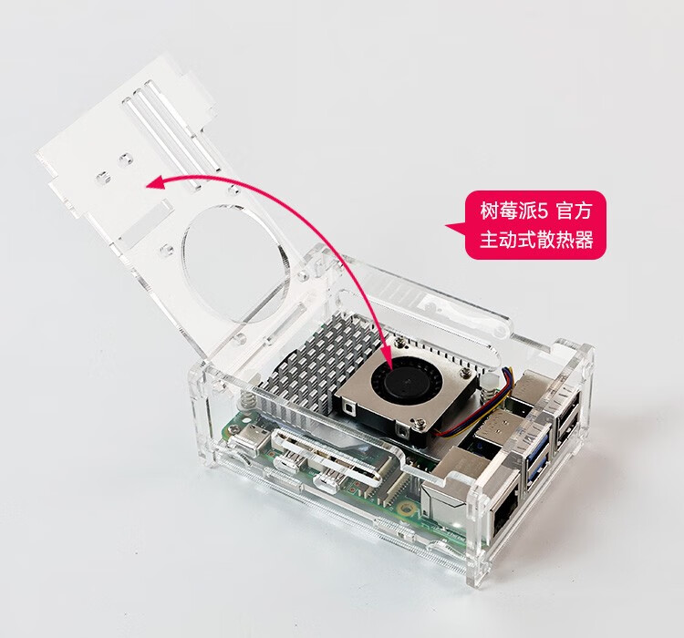 Yabo Intelligent Raspberry Pi 5th generation Pi5 transparent acrylic shell can be installed with PWM speed-adjustable fan radiator camera protection Pi5 acrylic shell (with active radiator)