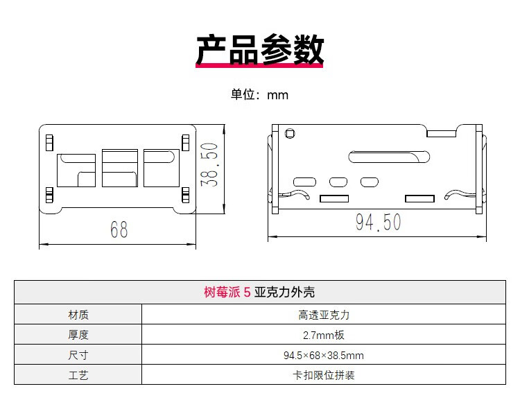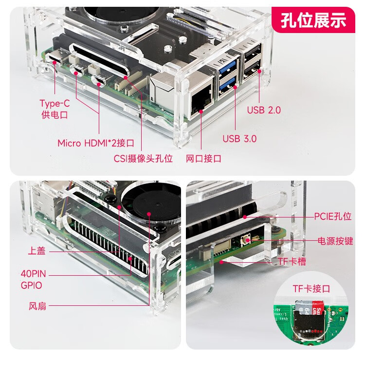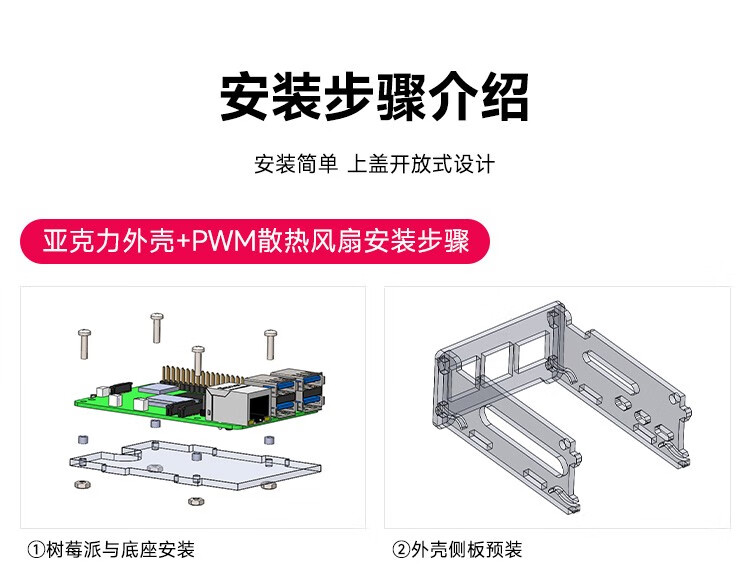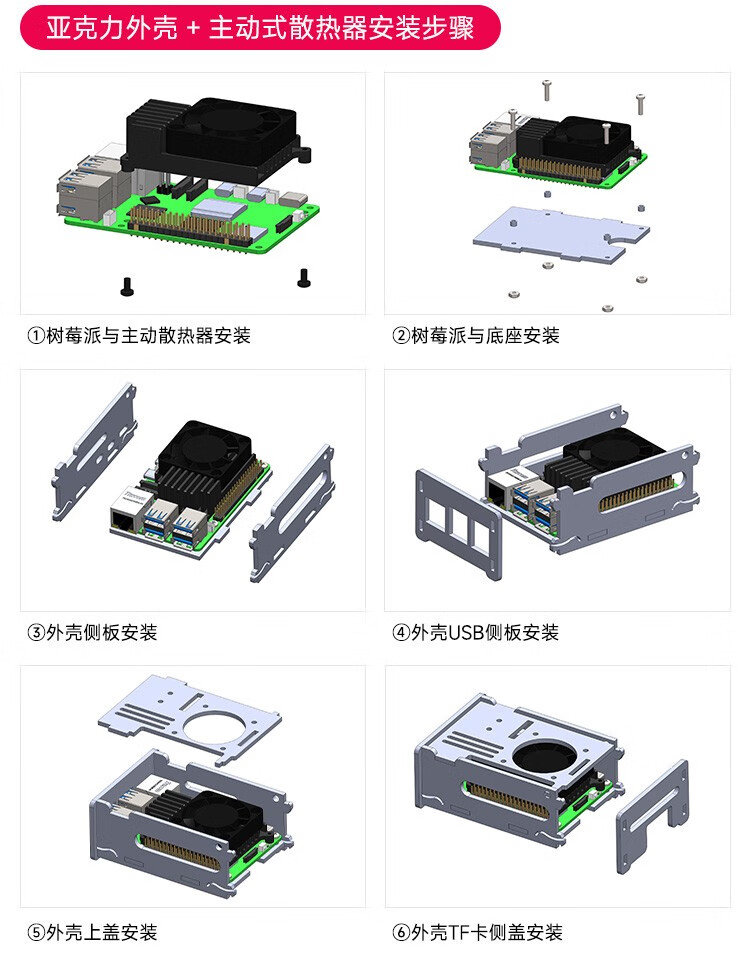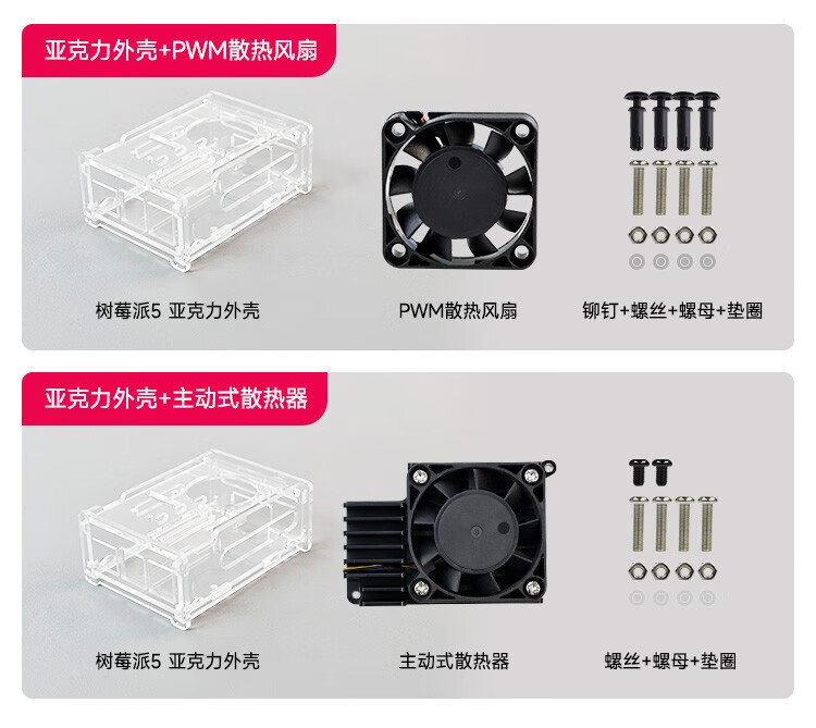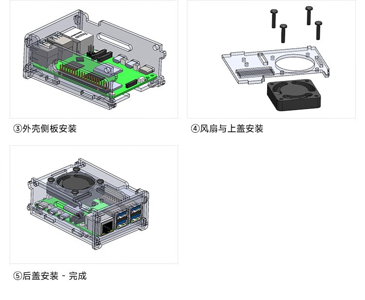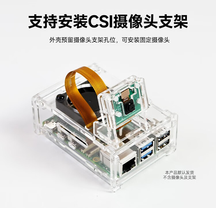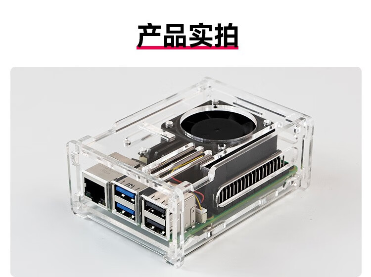Yabo Intelligent Raspberry Pi 5th generation Pi5 transparent acrylic shell can be installed with PWM speed-adjustable fan radiator camera protection Pi5 acrylic shell (with active radiator)