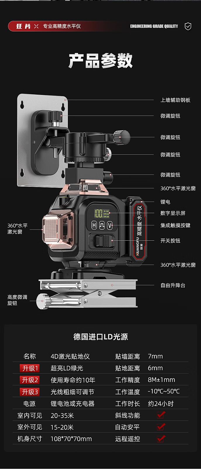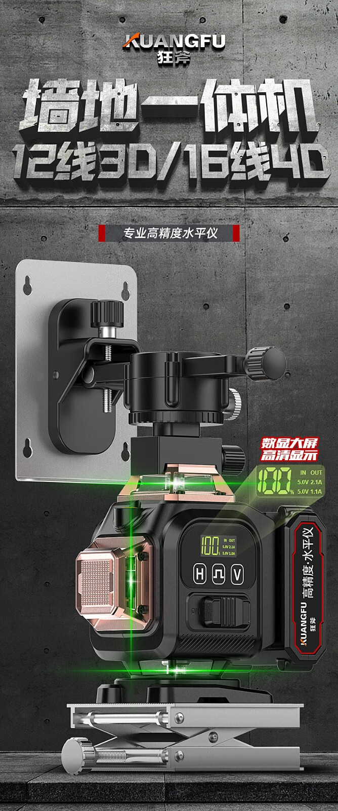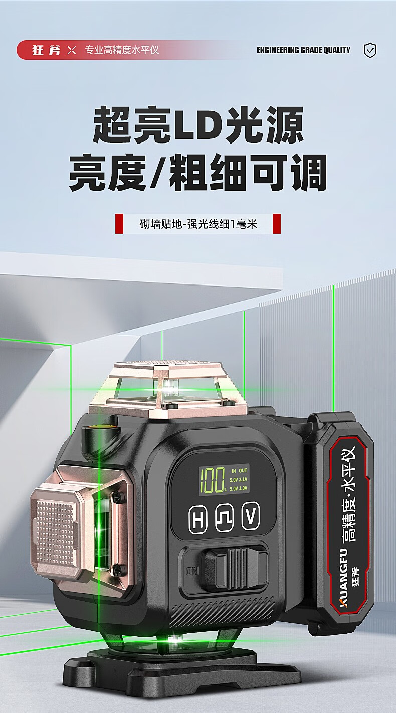 Crazy Ax Infrared Level Mini Small High-Precision Strong Light Thin Line Laser Level Outdoor Strong Light Automatic Wiring High-Precision Strong Light 16 Lines 16000mAh Dual Battery