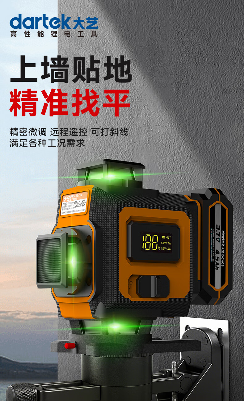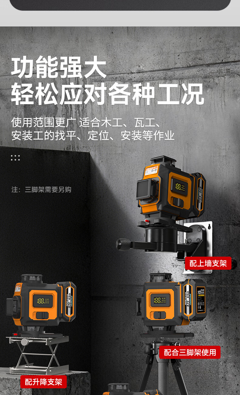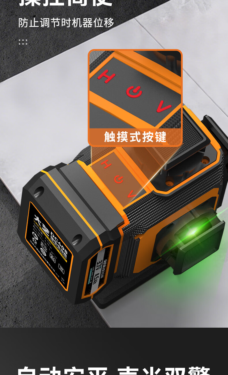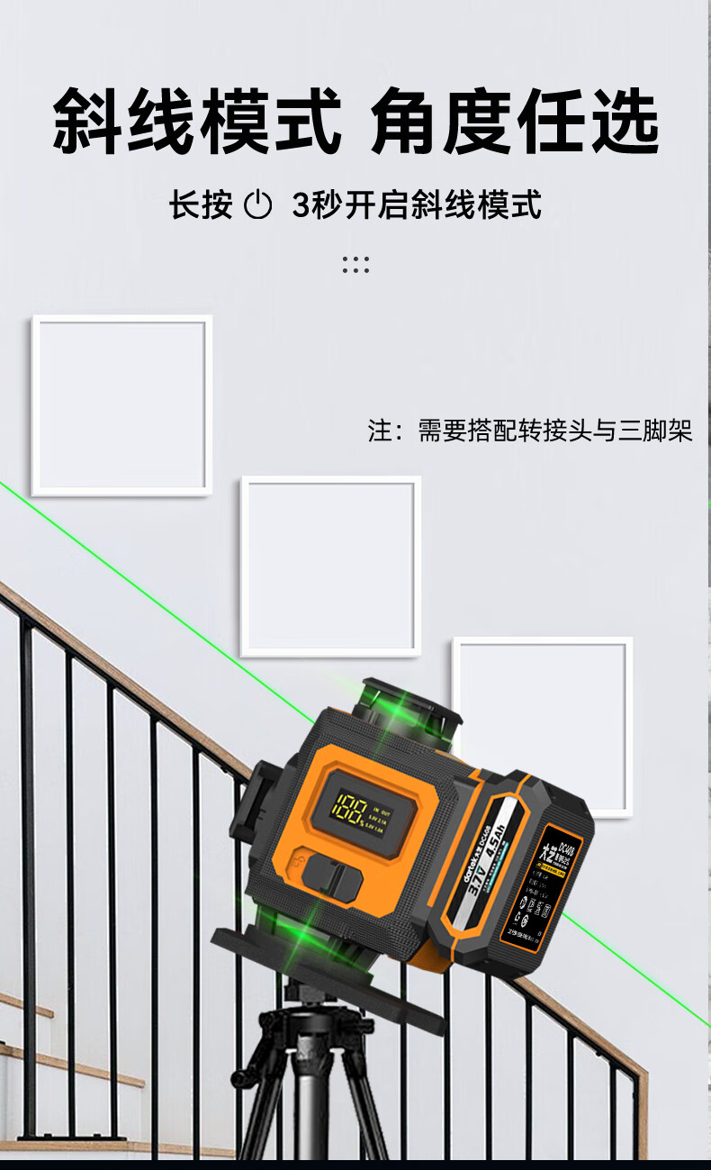 Dayi 8/12/16 line infrared level meter strong light lifting support rod high precision strong light thin line battery instrument 8 line green light dual battery + wall rack Dayi genuine