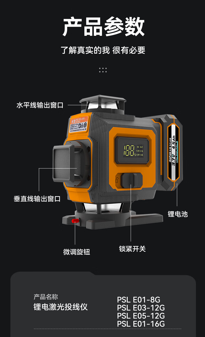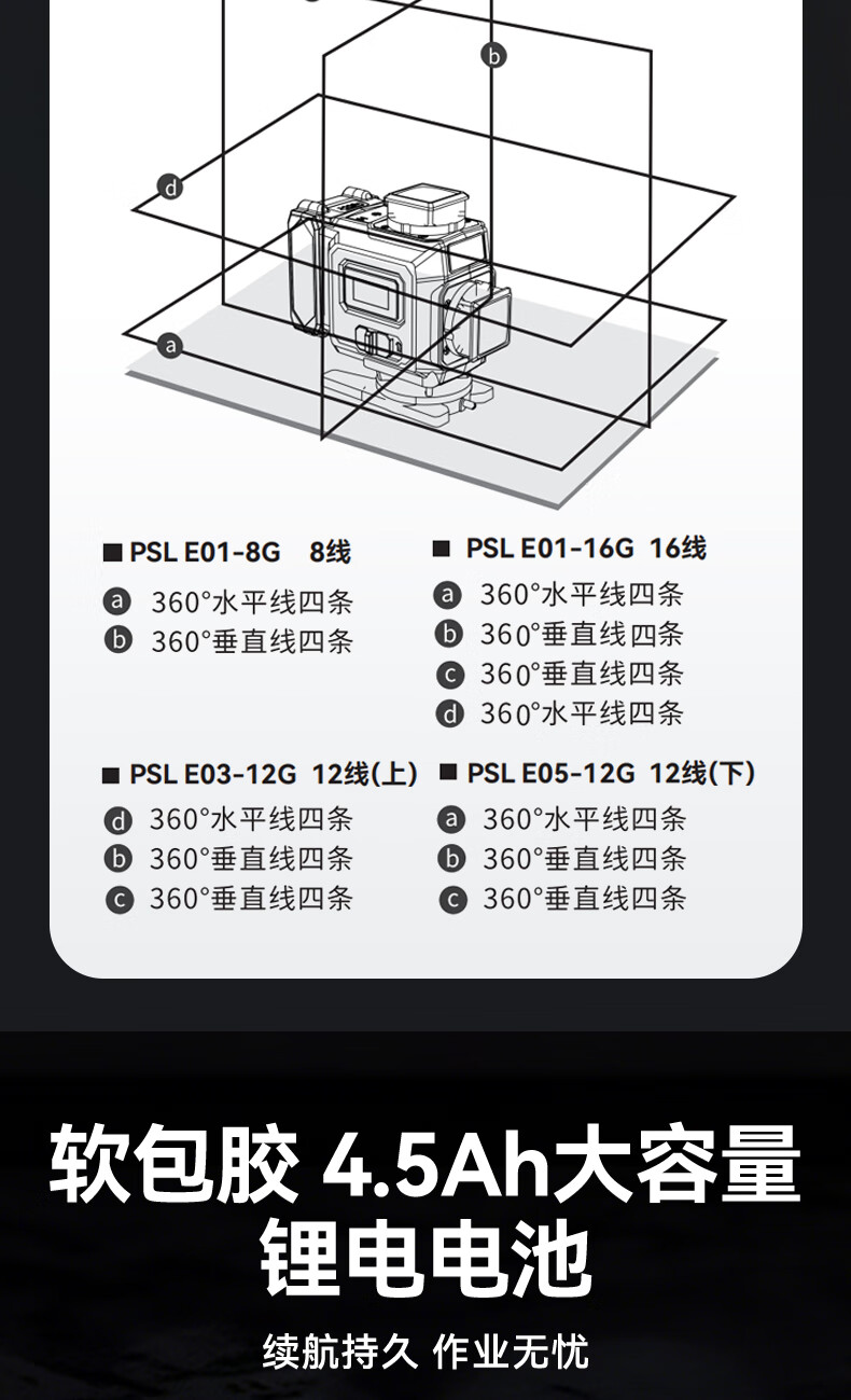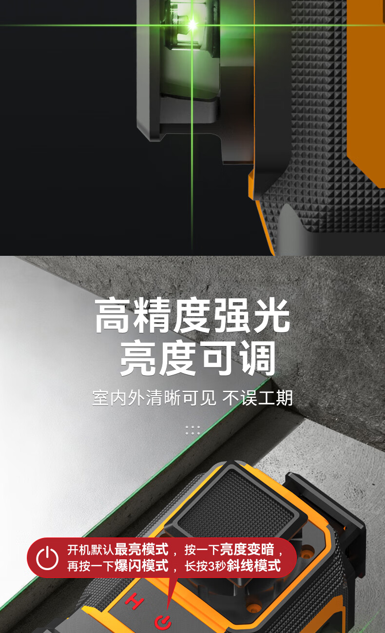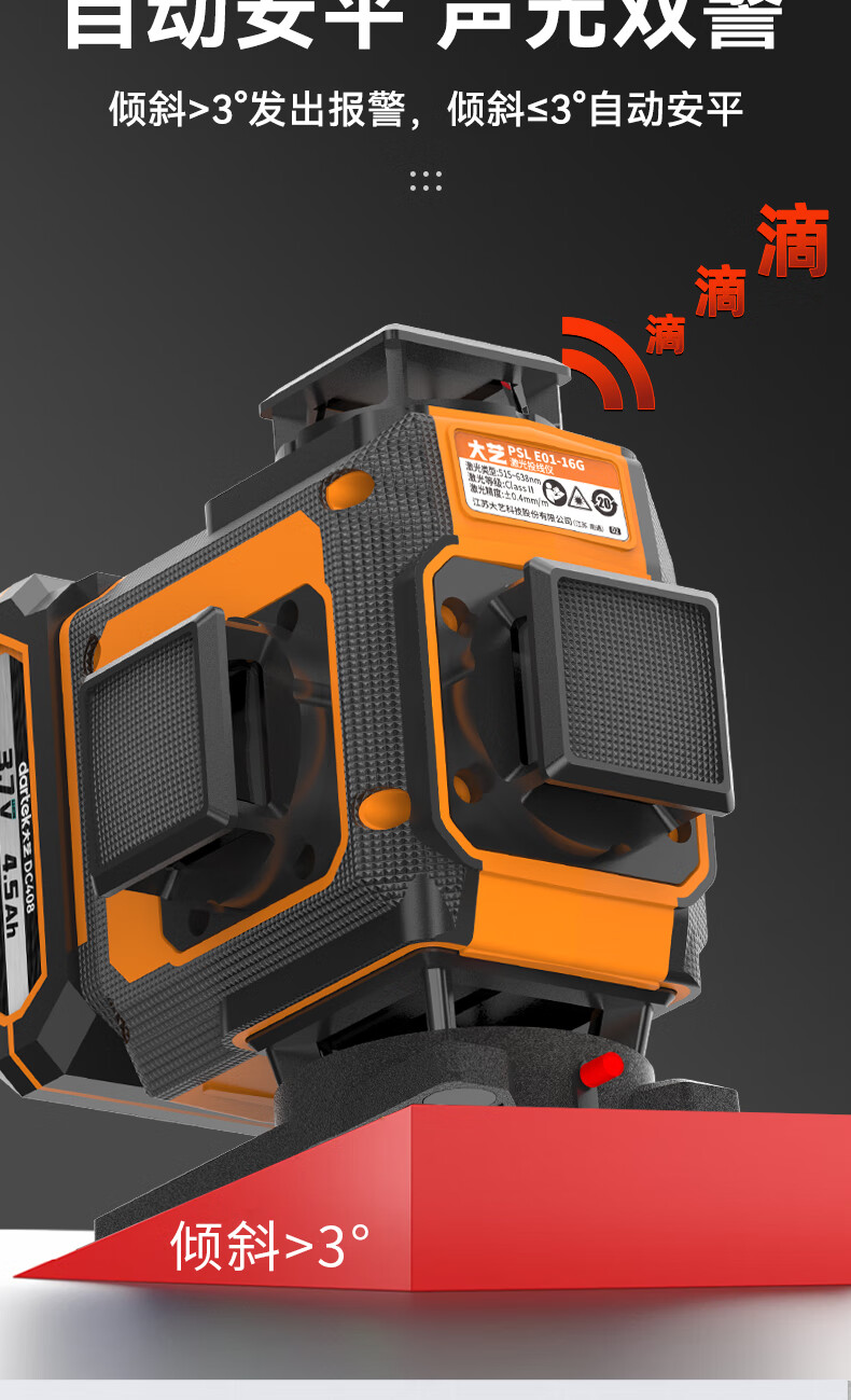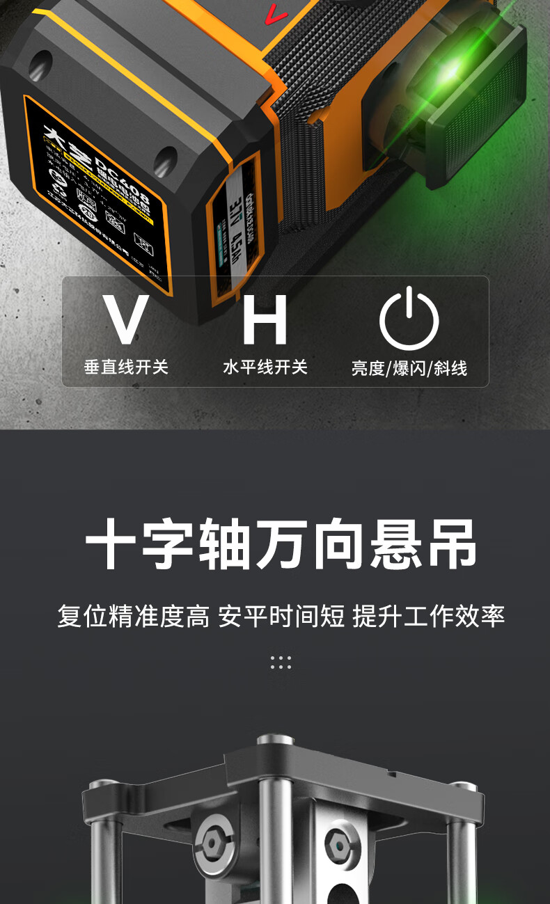Dayi 8/12/16 line infrared level meter strong light lifting support rod high precision strong light thin line battery instrument 8 line green light dual battery + wall rack Dayi genuine
