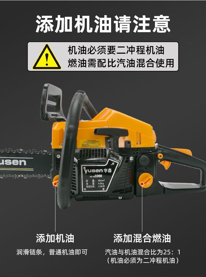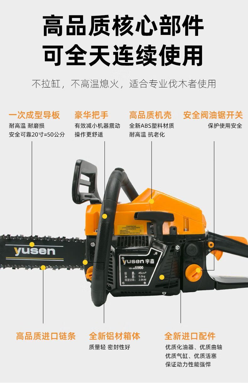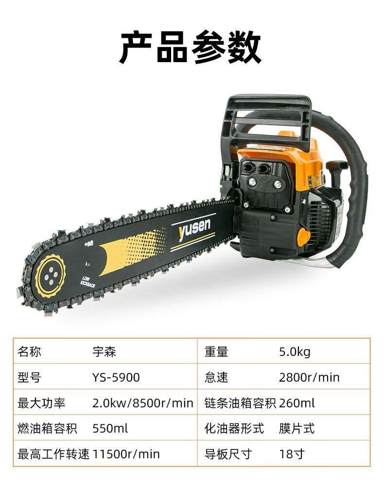 Yusen gasoline saw 5900/5520s high-power professional logging saw high-power garden tree feller gasoline saw Yusen 5900 chain saw 18 inches standard (2 Yusen chains + one bottle of oil)