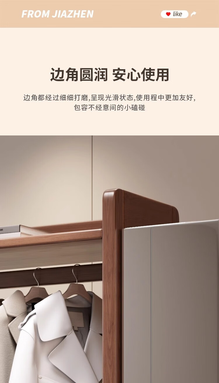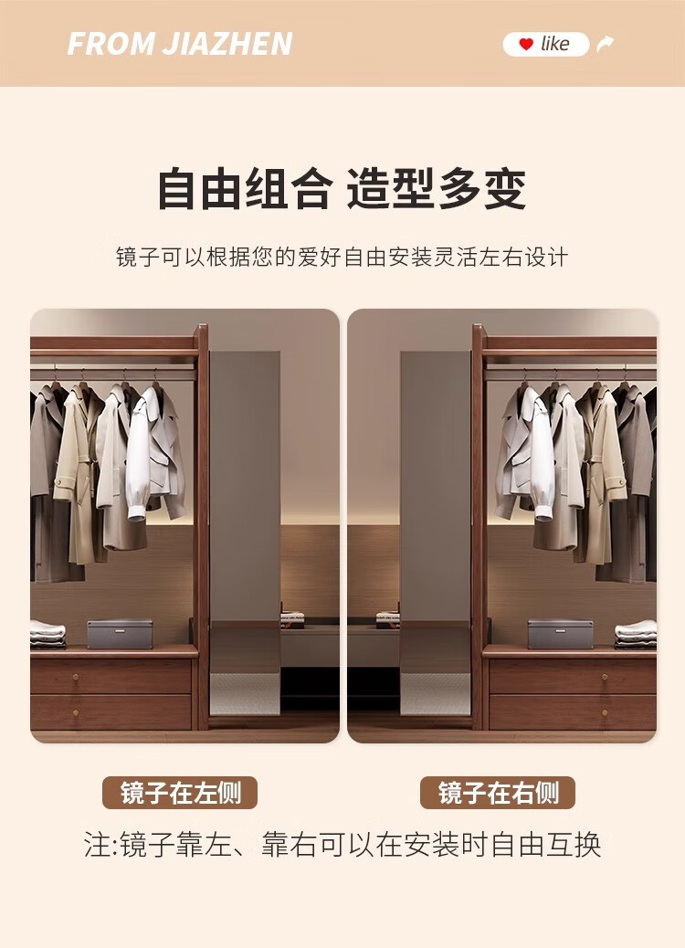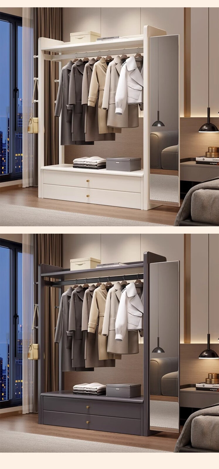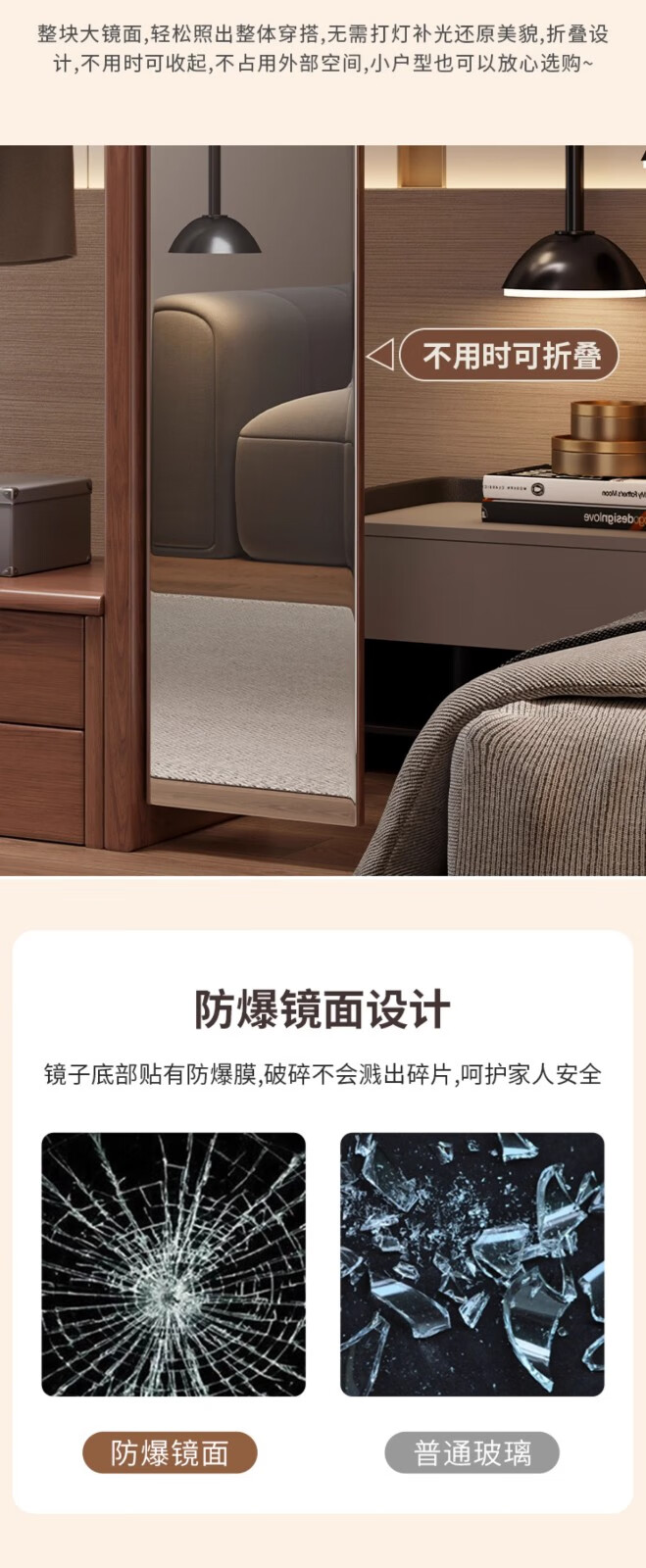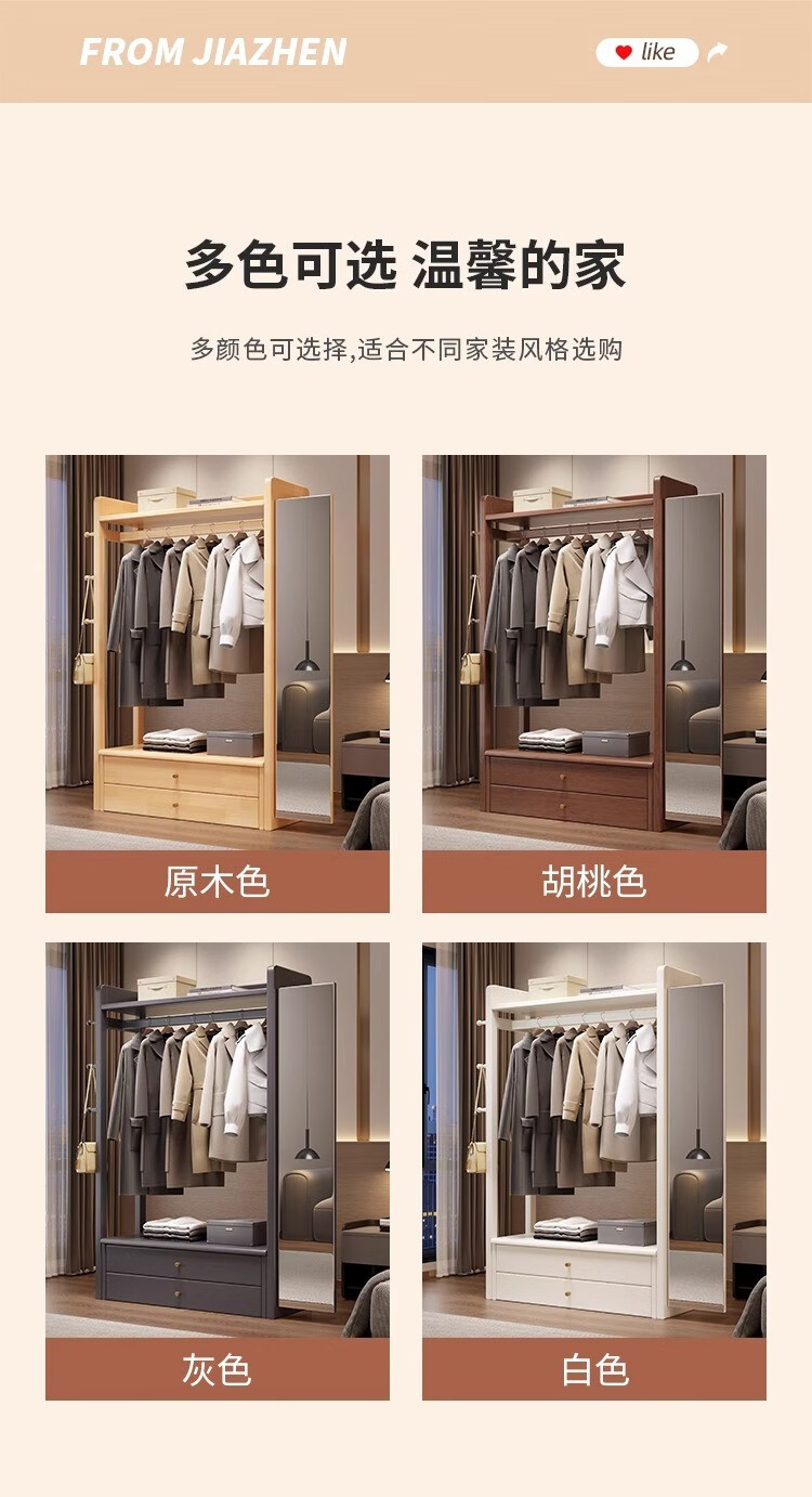 Shaochengke coat rack floor-standing household solid wood coat rack dressing mirror combination living room bedroom multi-functional fitting mirror storage rack walnut color-120cm (installation included)