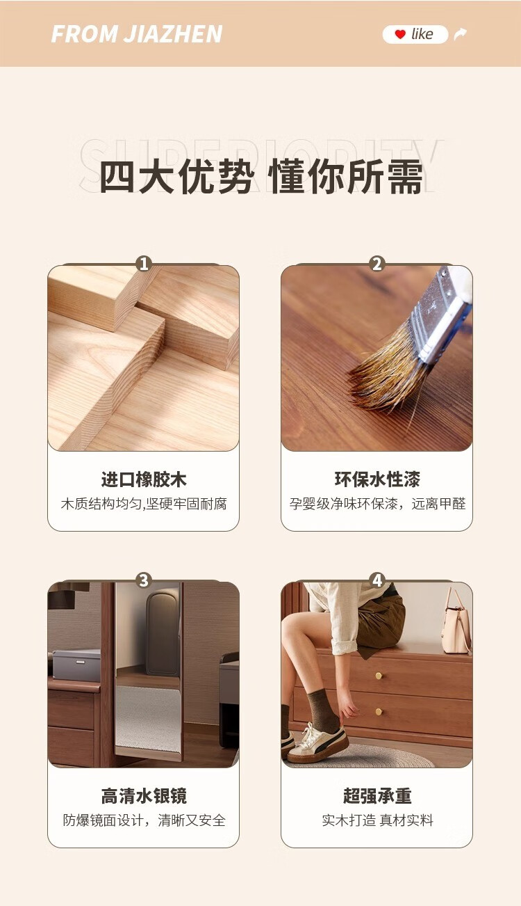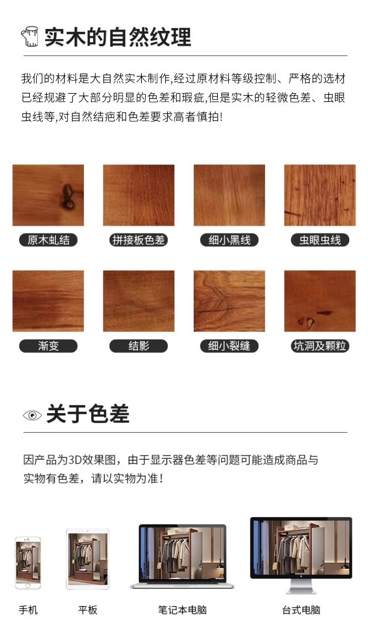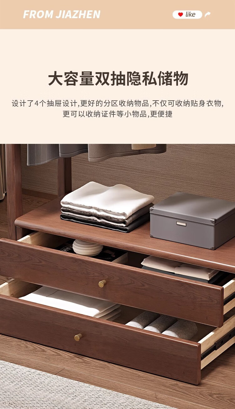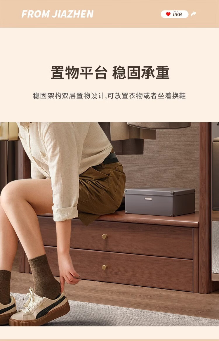 Shaochengke coat rack floor-standing household solid wood coat rack dressing mirror combination living room bedroom multi-functional fitting mirror storage rack walnut color-120cm (installation included)