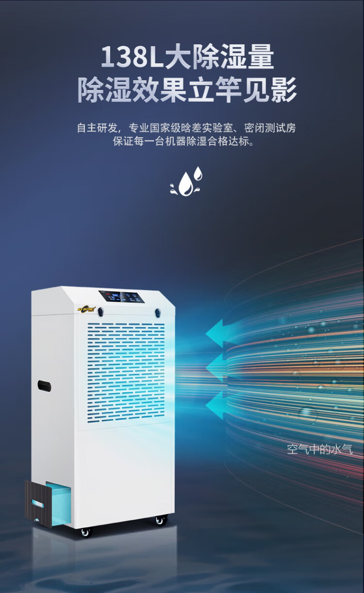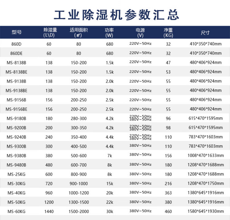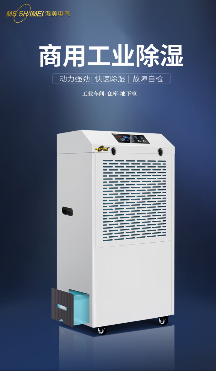 MSSHIMEI industrial dehumidifier is suitable for 80~200 and is widely used in workshops/warehouses/underground garages/libraries/computer rooms/basements/offices/files/data 156L/day and is suitable for 250 square meters MS-9156BE