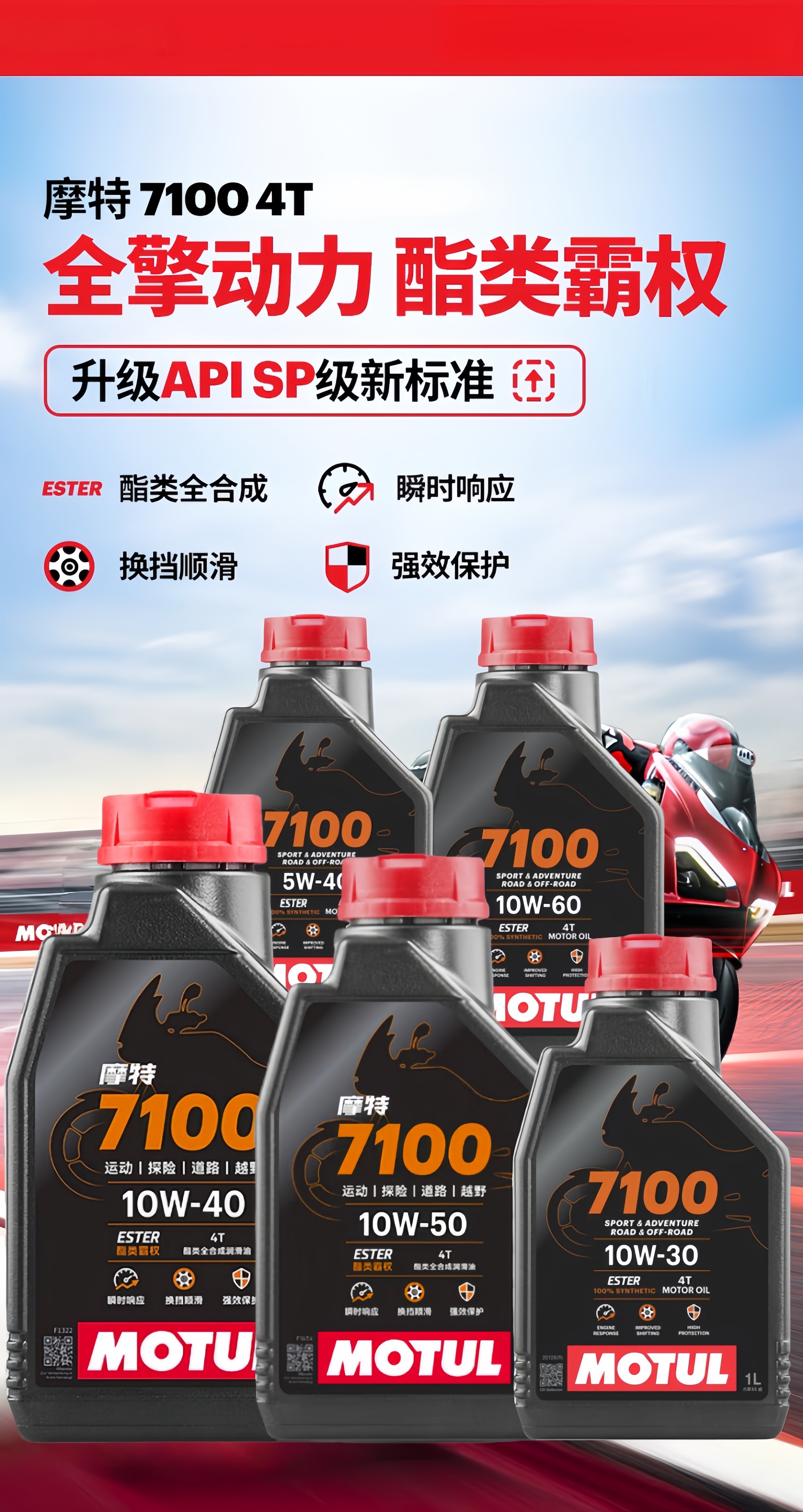 MOTUL motorcycle oil, track motorcycle lubricant, 4T four-stroke engine lubricant 7100 10W-30 SP ester fully synthetic 1L