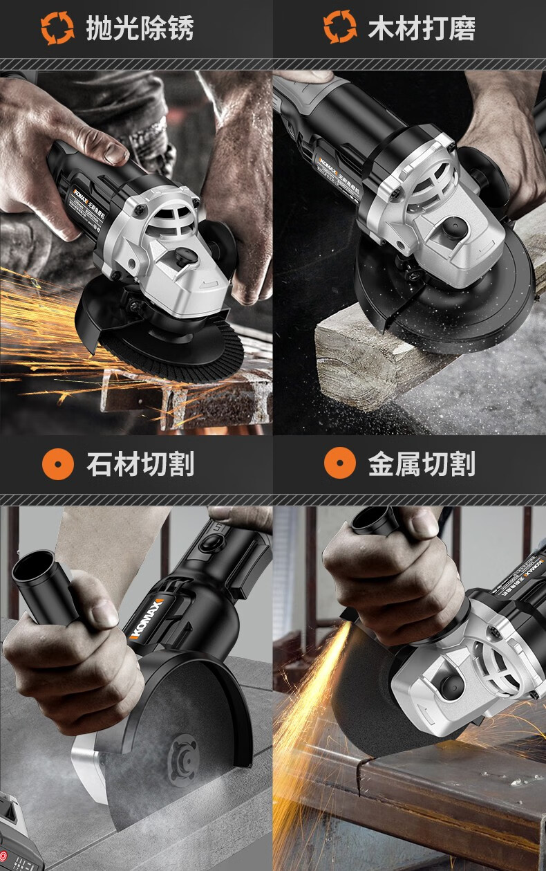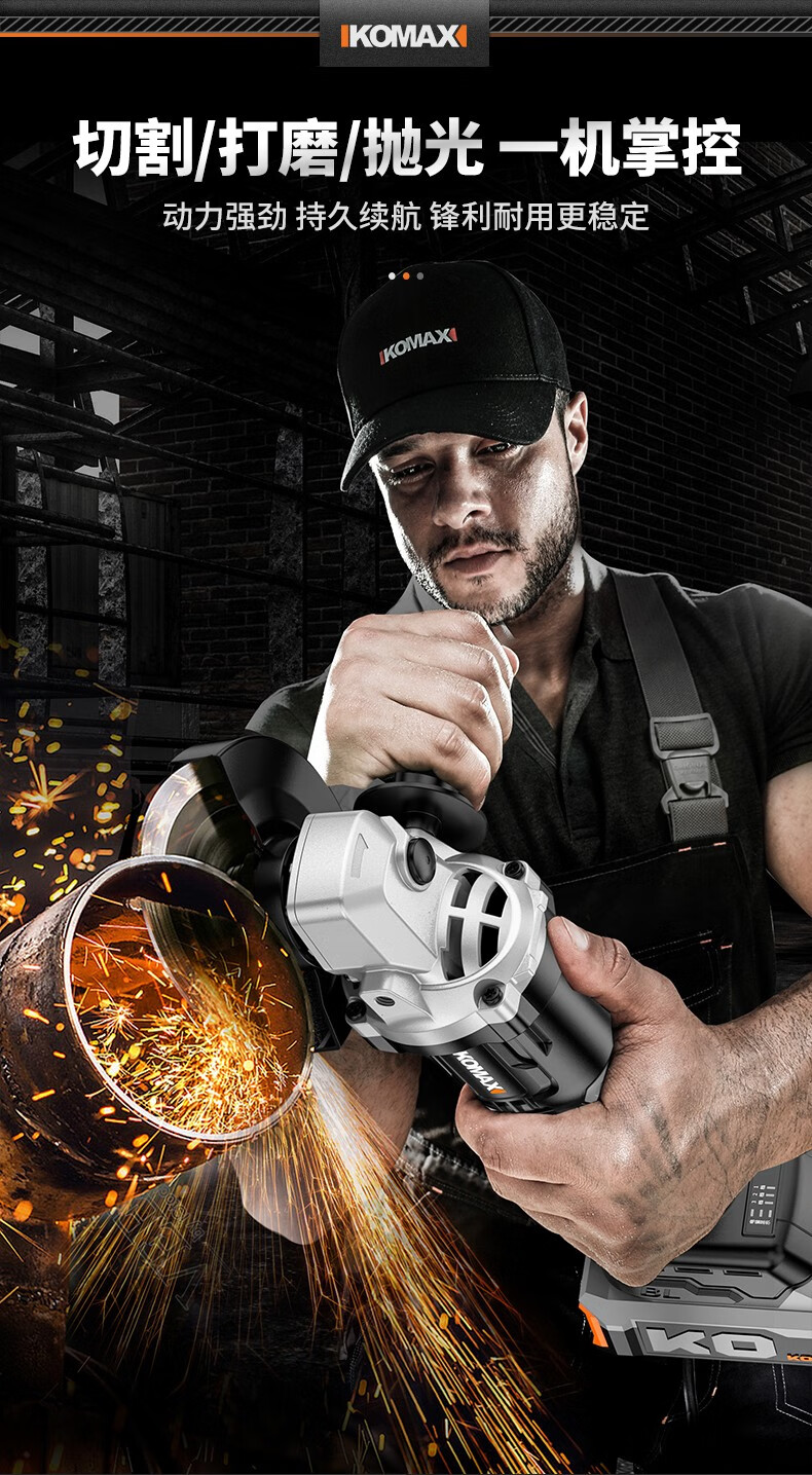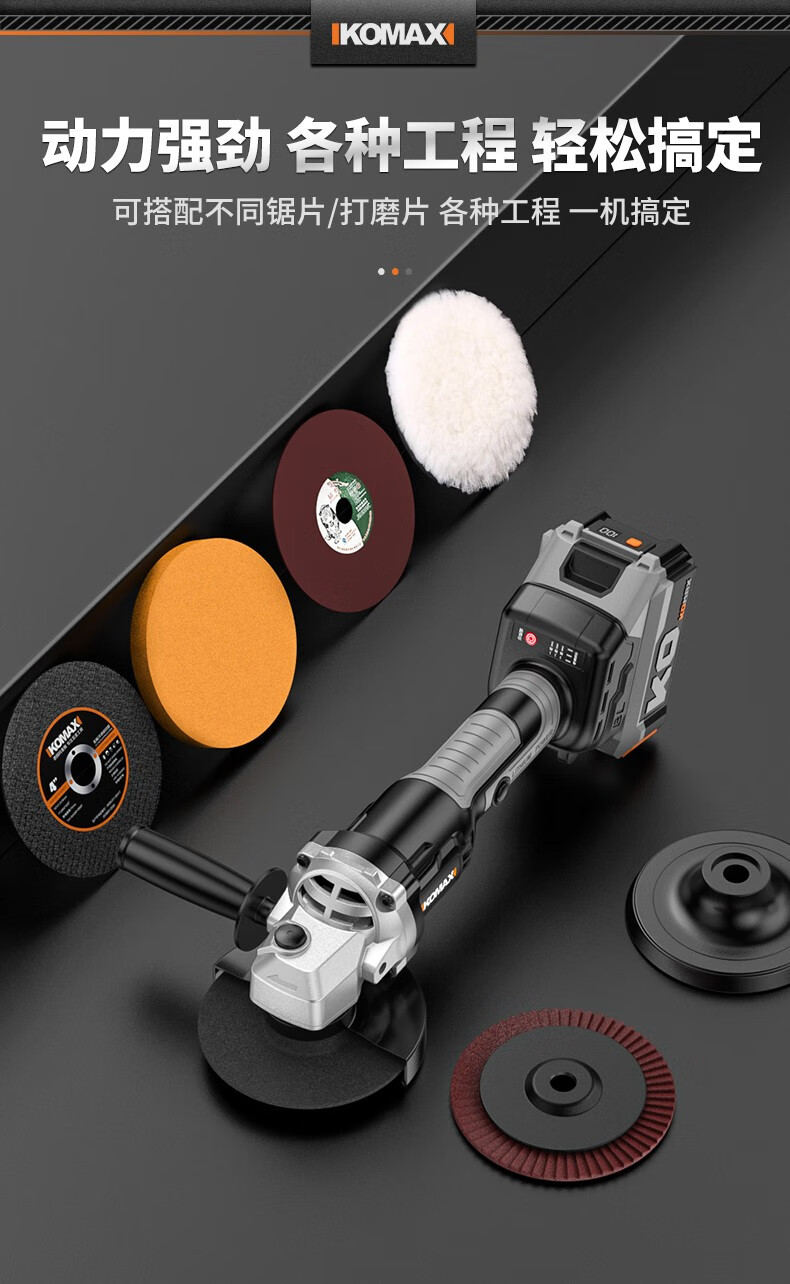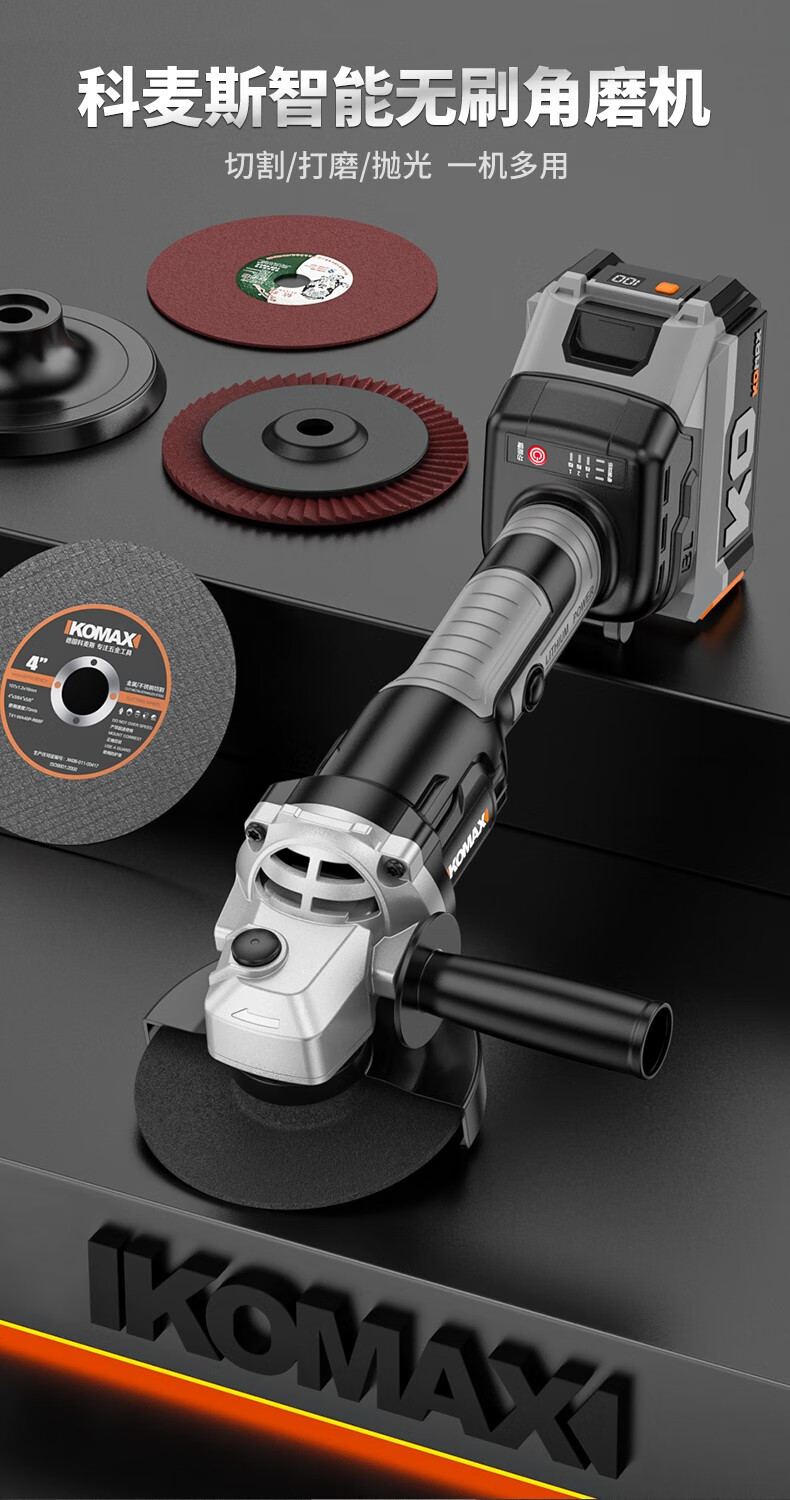 KOMAX brushless angle grinder rechargeable lithium electric cutting machine woodworking polishing machine small hand grinder angle grinder brushless angle grinder paper box bare metal