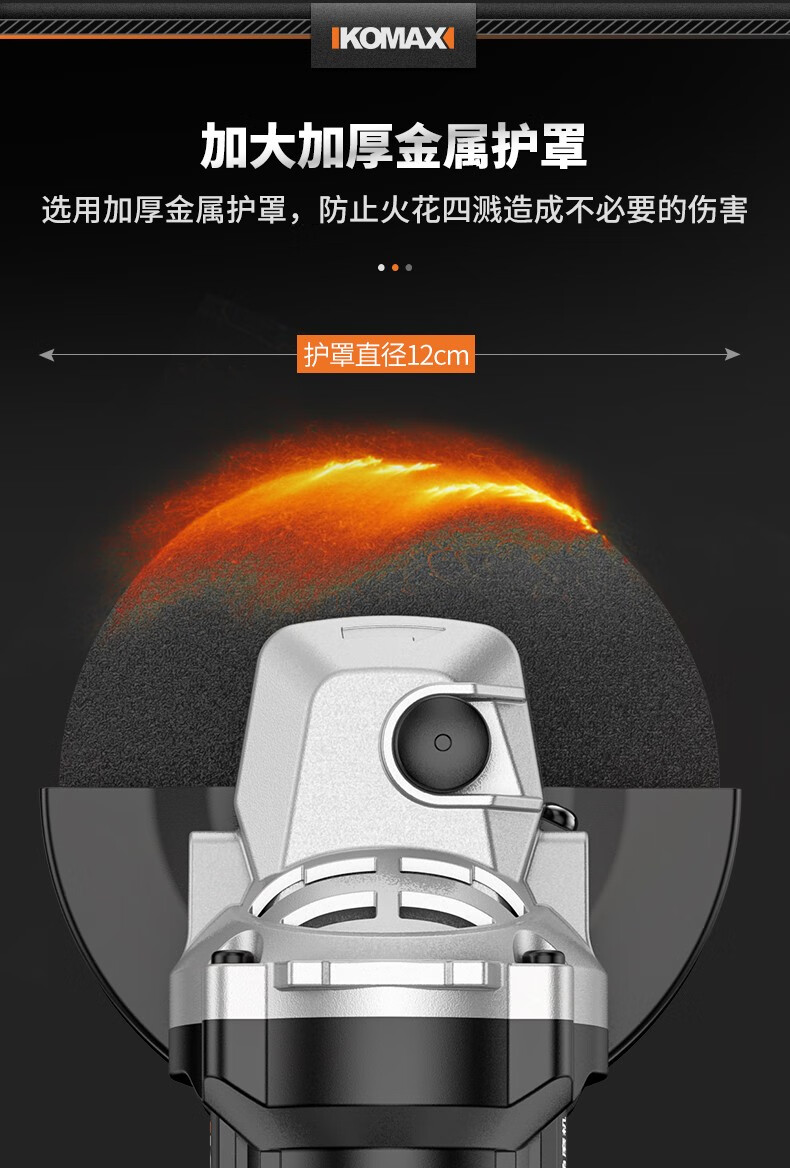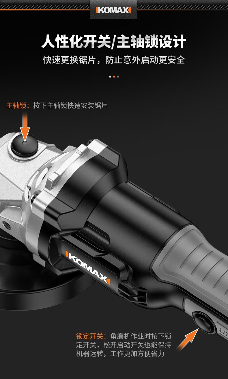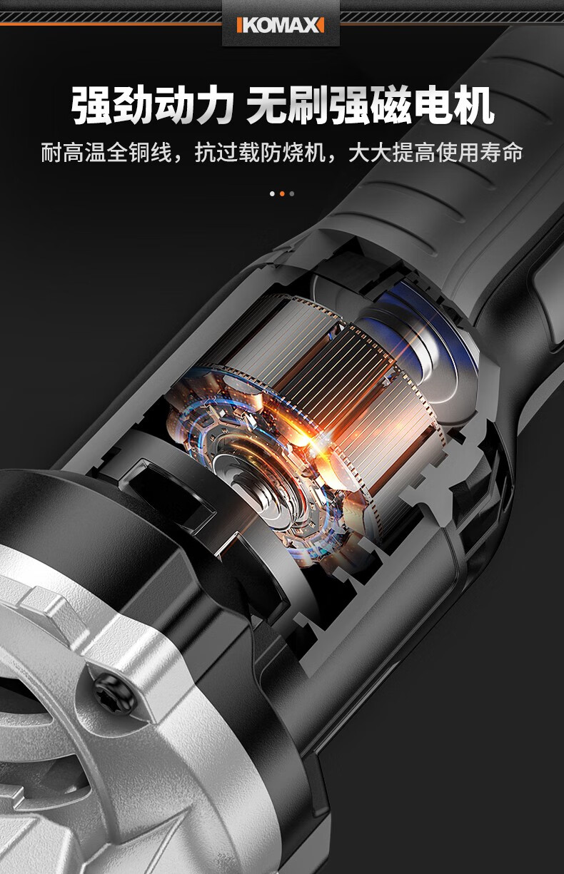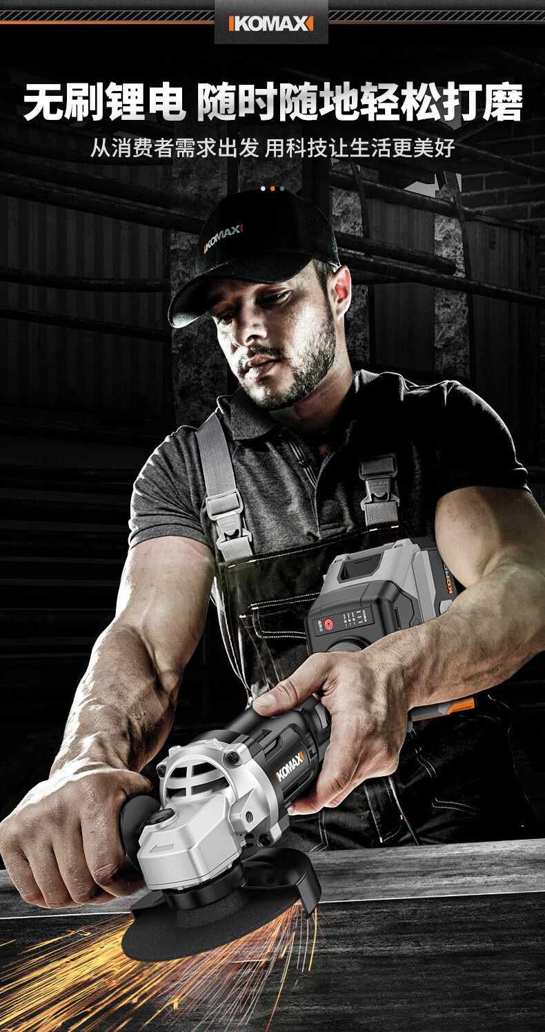 KOMAX brushless angle grinder rechargeable lithium electric cutting machine woodworking polishing machine small hand grinder angle grinder brushless angle grinder paper box bare metal