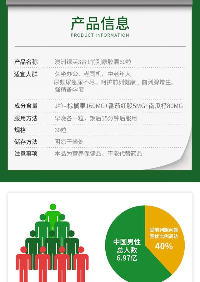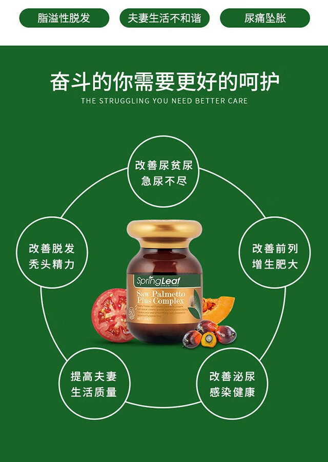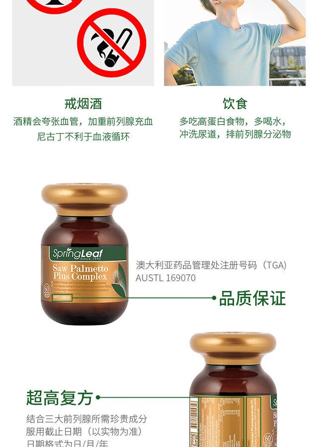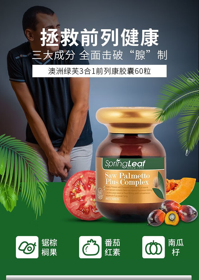 Spring leaf Australian men's lycopene prolecon 60 tablets male prostate urethra health preparation saw palmetto 2 bottles (60 days' supply)