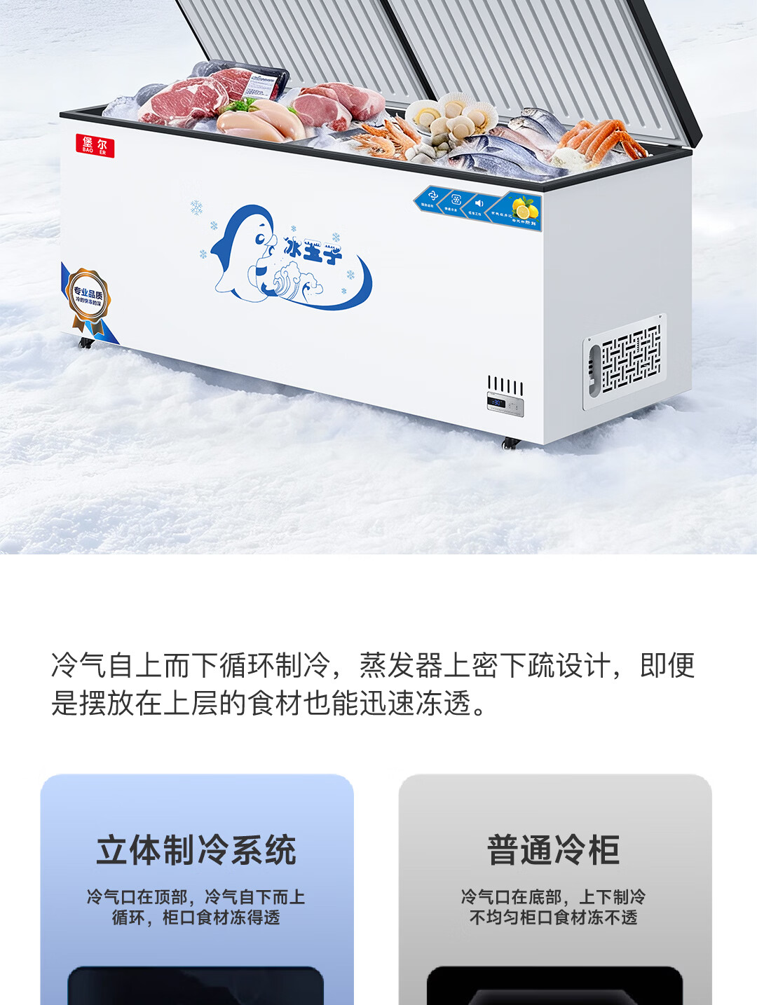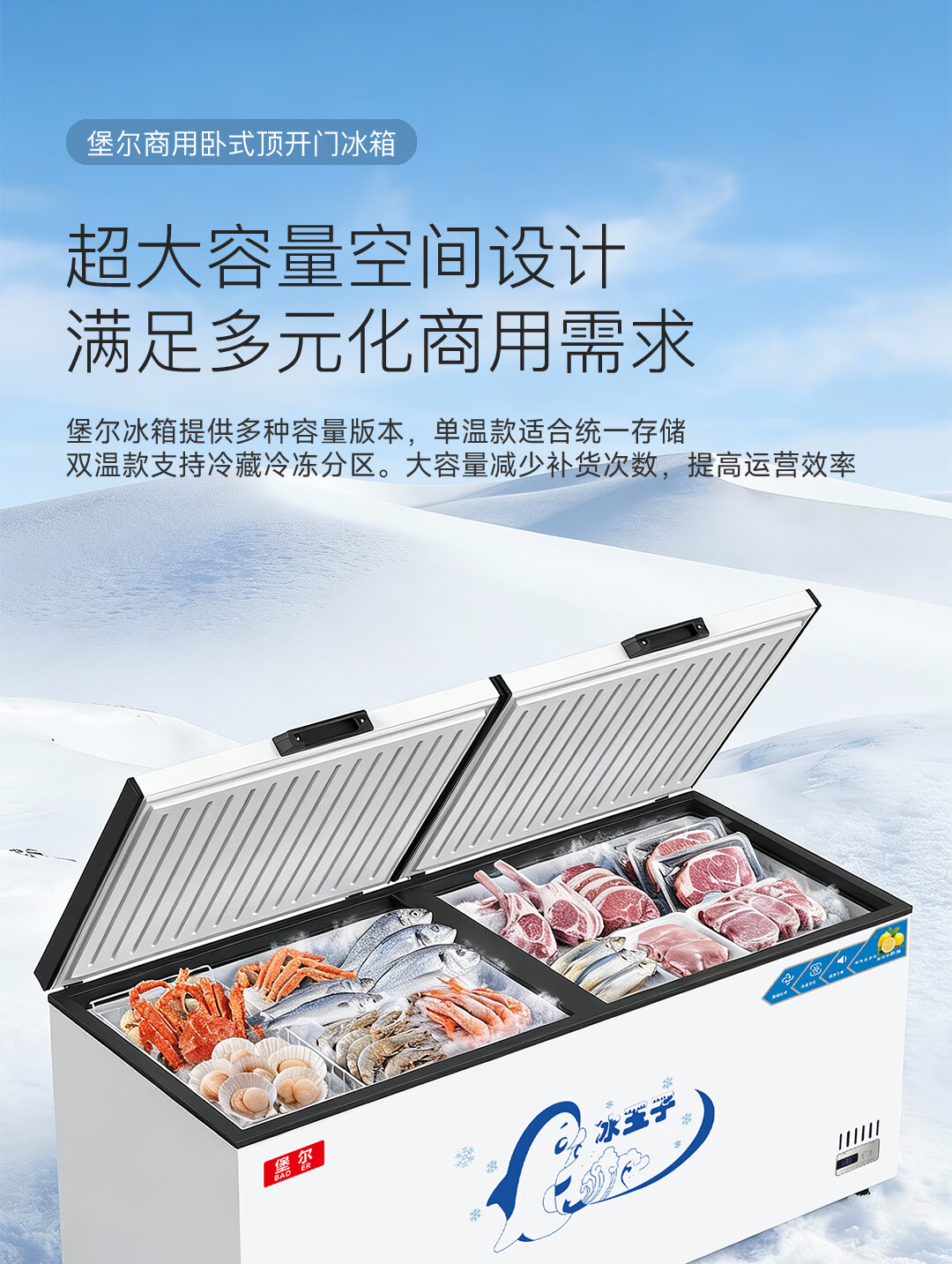 BAOER Freezer Commercial Large Capacity Full Freezing Household Dual Temperature Horizontal Freezer Display Cabinet Home and Business Dual-Purpose Storage Large Freezer Kitchen Dining Back Kitchen Refrigeration Freezer Conversion Freezer 828 Single Temperature Copper Tube/Length 1.73 Meters Width 0.63 Meters