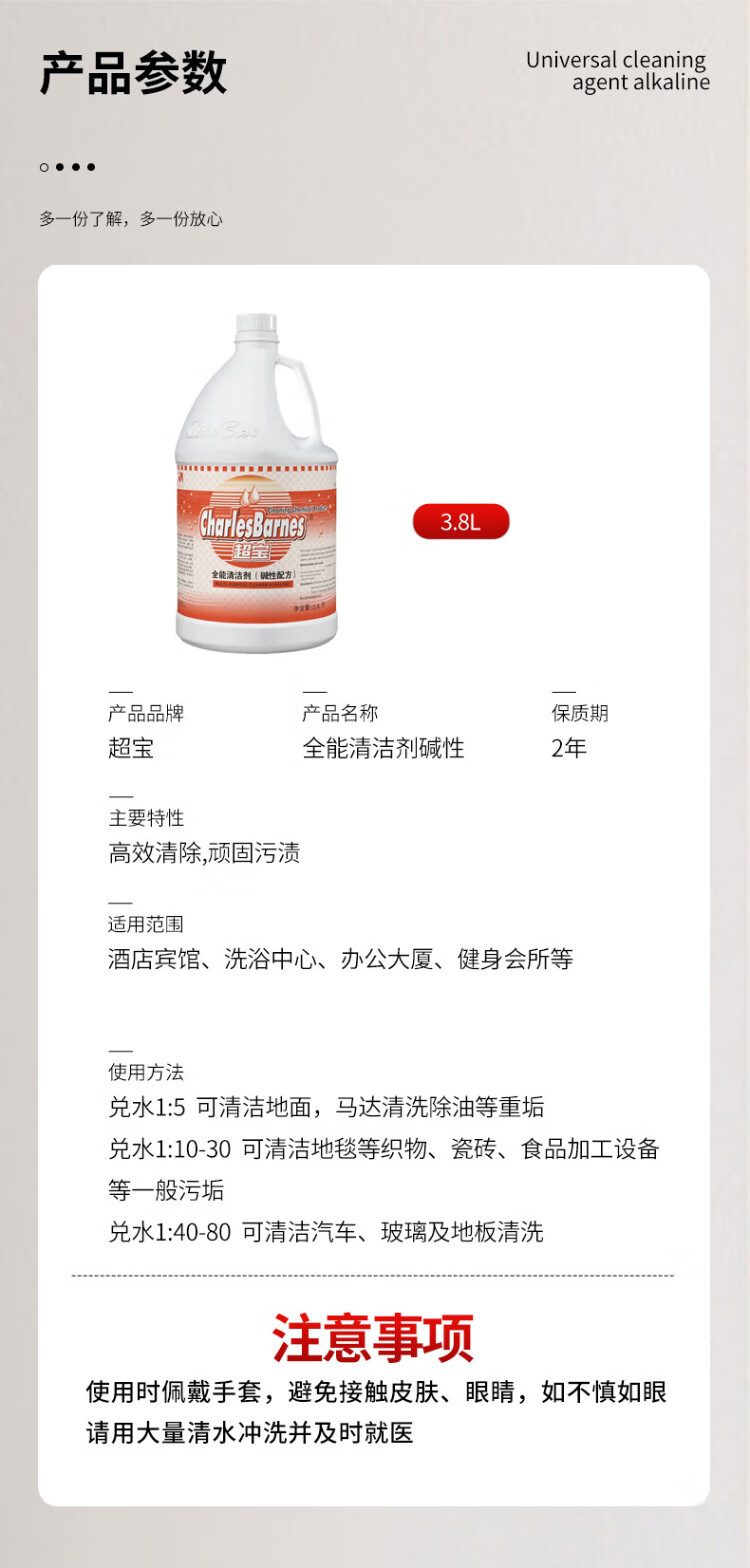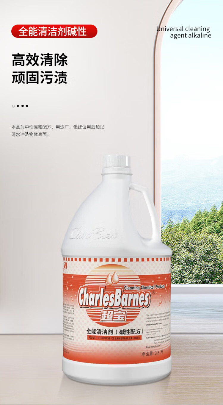Chaobao all-purpose cleaner alkaline formula large barrel floor tile glass cleaning liquid bathroom decontamination all-purpose green water DFF011 3.8L*1 bottle