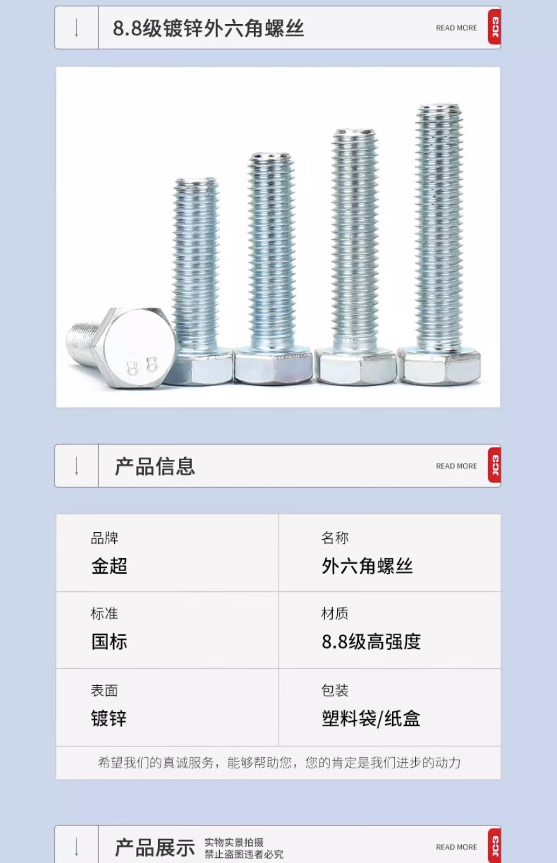 Jinchao grade 8.8 galvanized external hexagonal screws extended high-strength bolts MM4M5M6M8M10M12M16M20-M30 M8*30 (20 pcs)