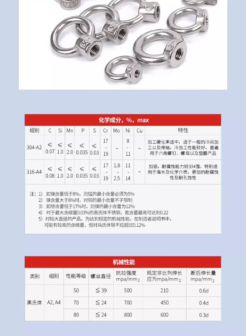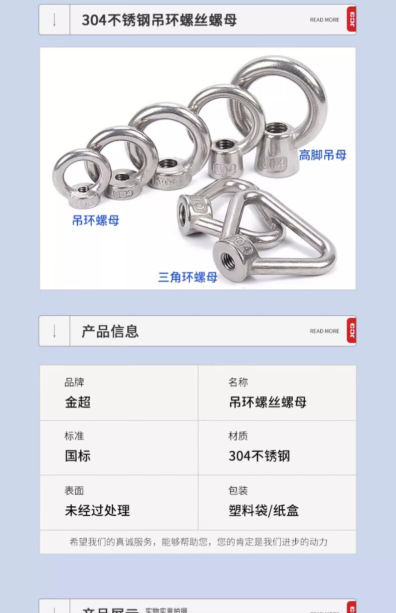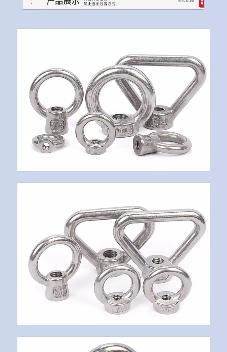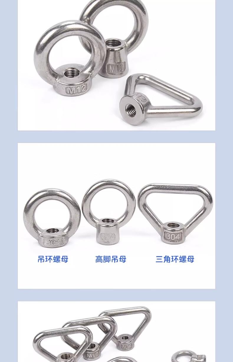 Jinchao 304 stainless steel lifting eye screw nut extension bolt O-shaped ring lifting screw M3M4M5M6-M24 M48 (1 piece) ring