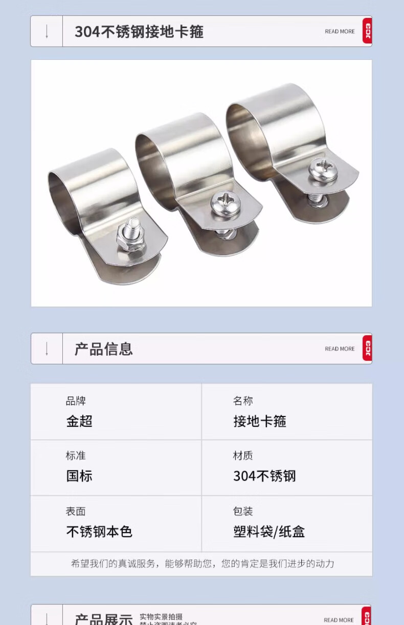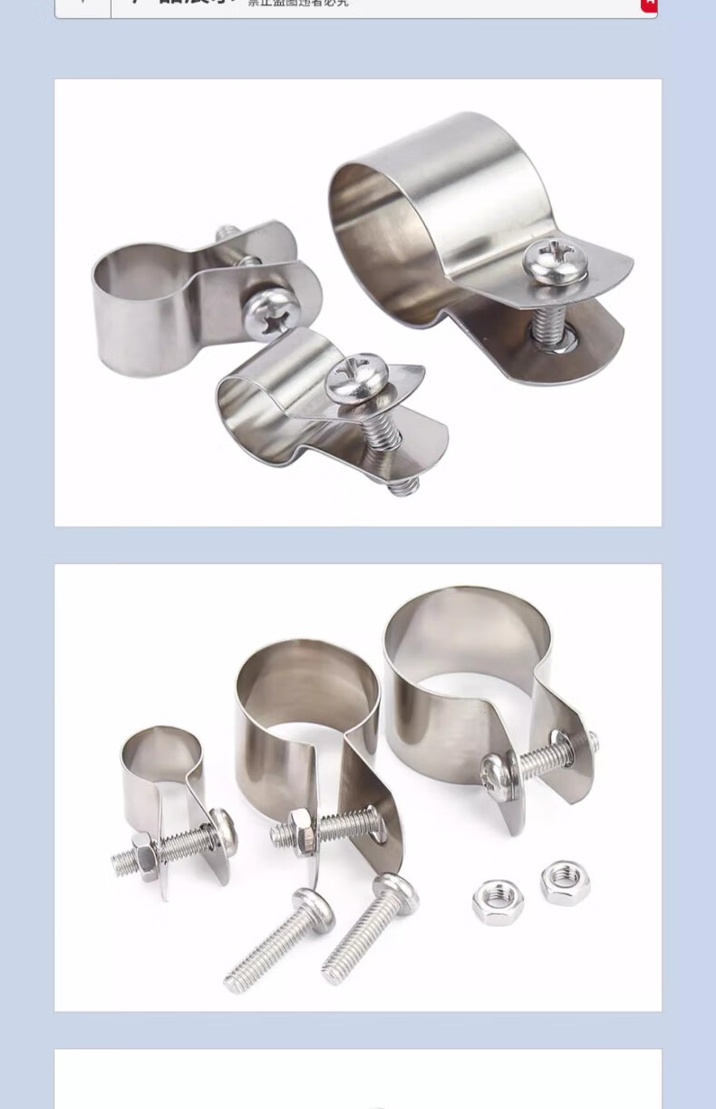 Jinchao 304 stainless steel pipe clamp round pipe fixed buckle clamp steel pipe riding clamp hoop connecting line grounding card 25mm (5 sets)