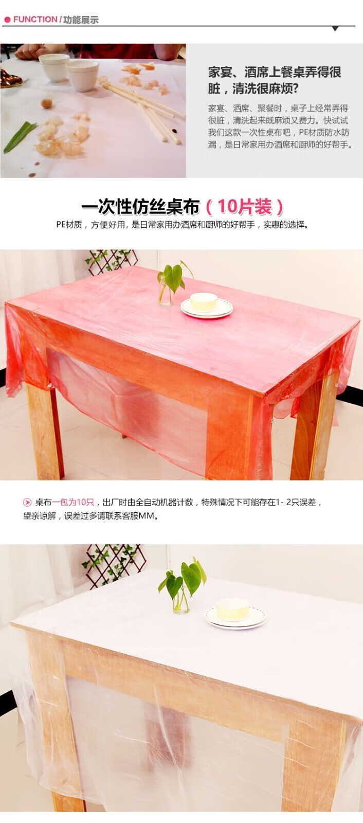 Jidaocook disposable tablecloth thickened plastic tablecloth wedding banquet tablecloth picnic mat household rectangular round table white 2 pack of 20 sheets 2.2*2.2m imitation silk tablecloth