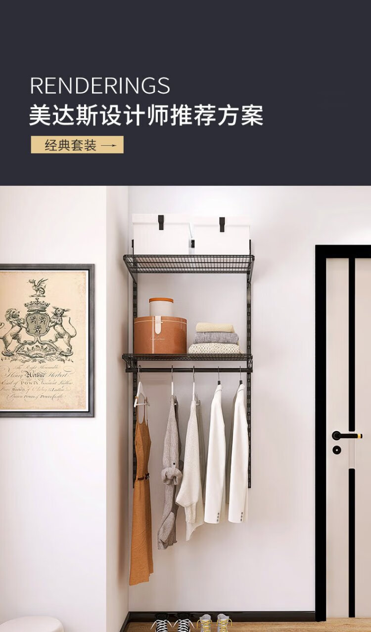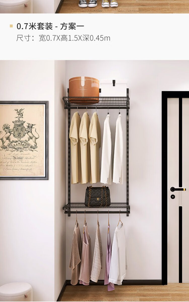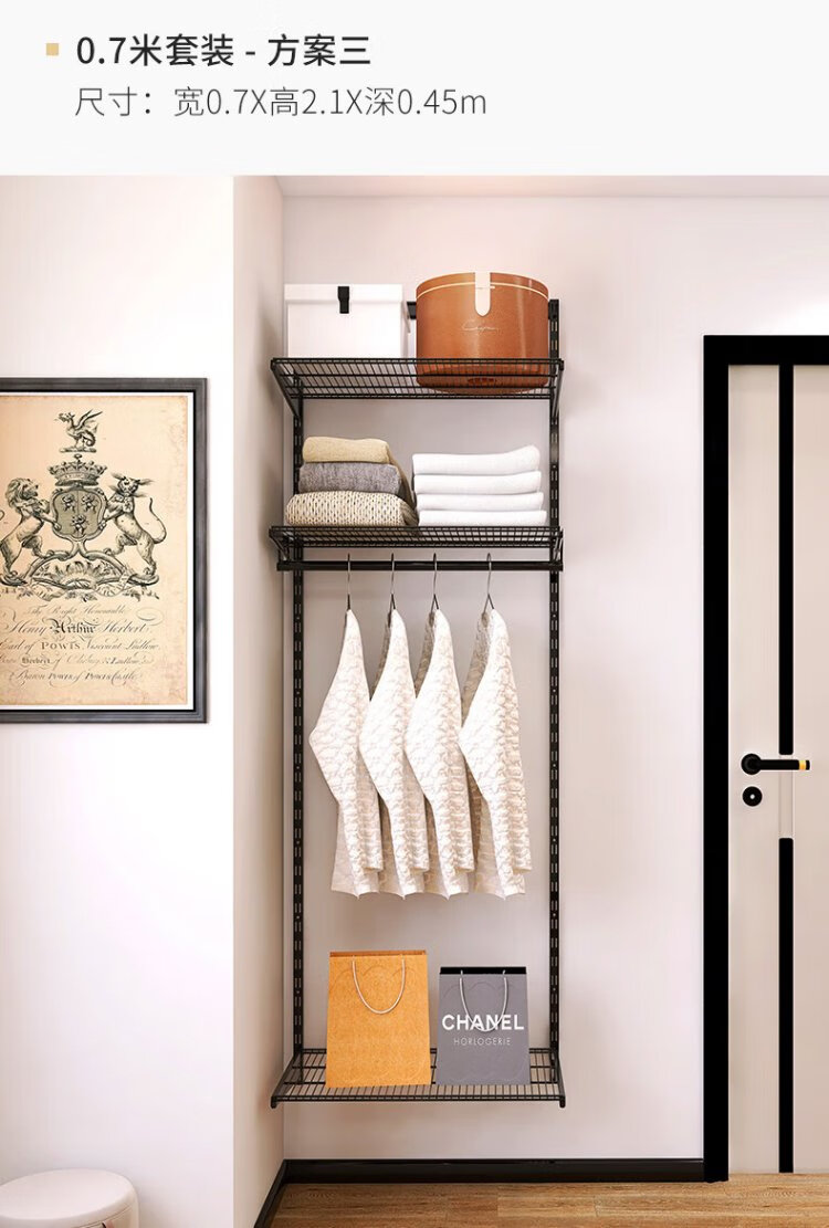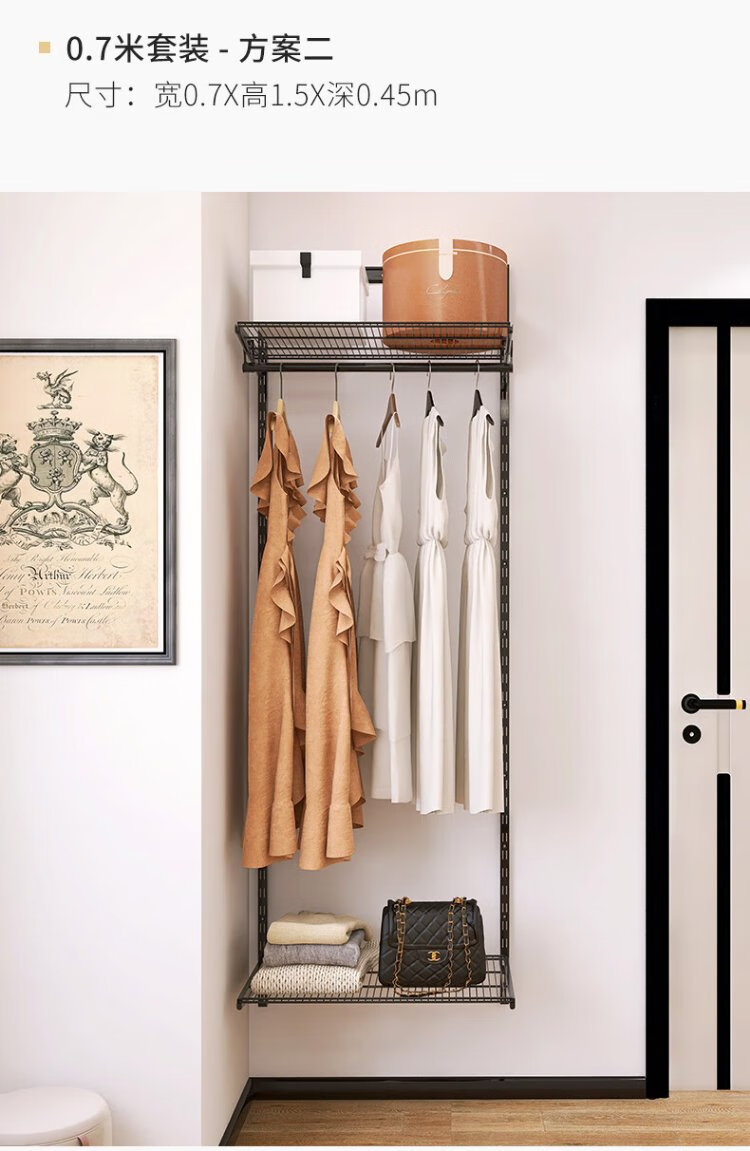 Midas Gray 0.7m black metal wardrobe coat rack custom cloakroom steel frame structure on the wall 0.7m wide metal wardrobe plan 1 (installation included)
