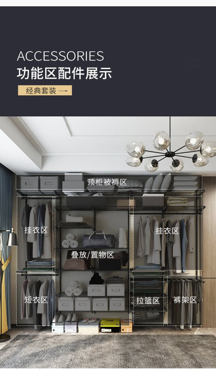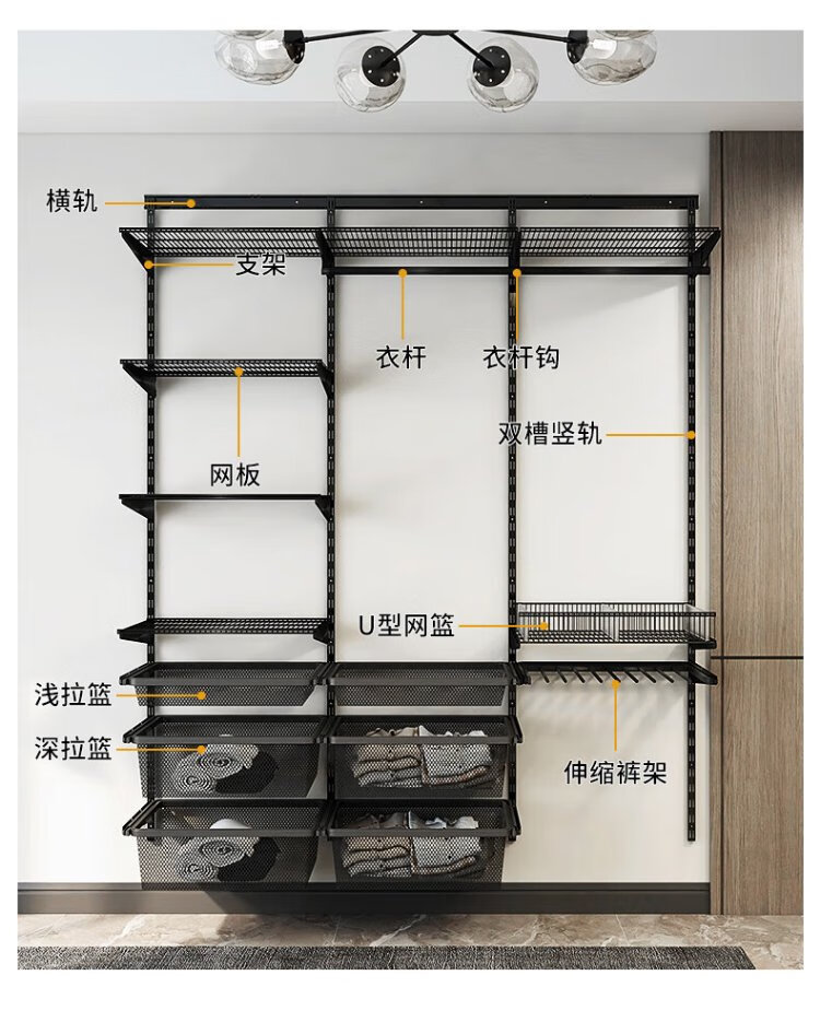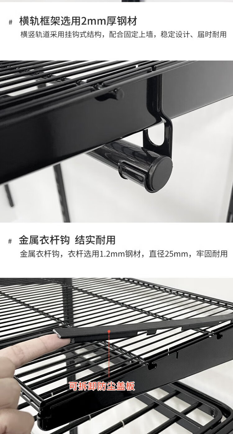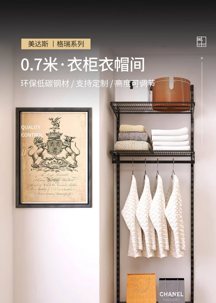 Midas Gray 0.7m black metal wardrobe coat rack custom cloakroom steel frame structure on the wall 0.7m wide metal wardrobe plan 1 (installation included)