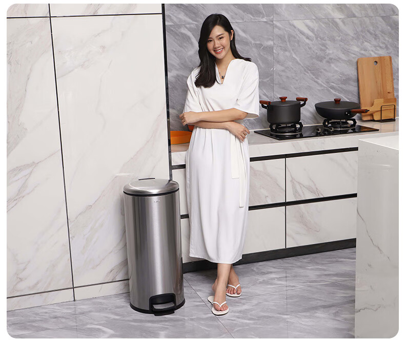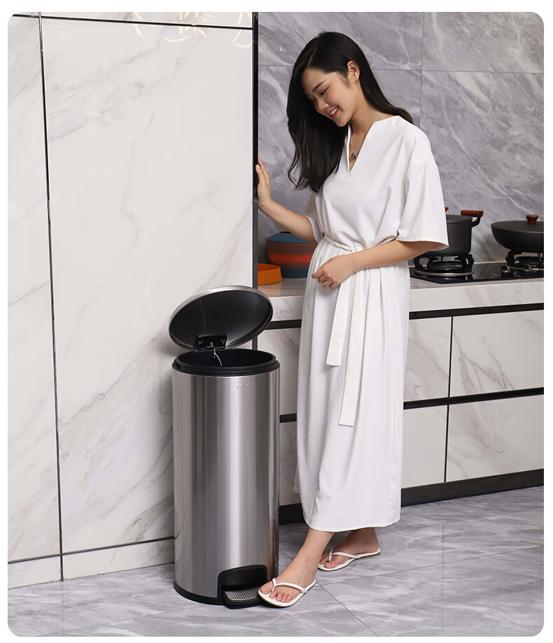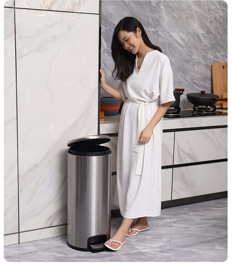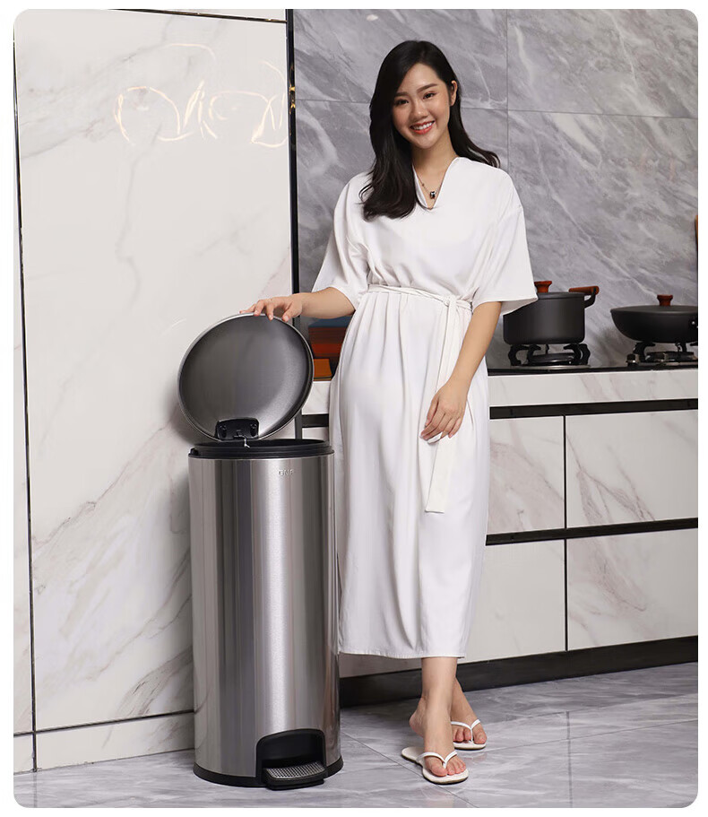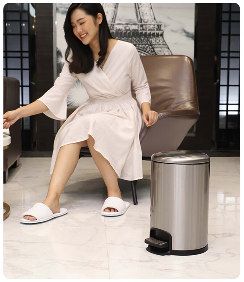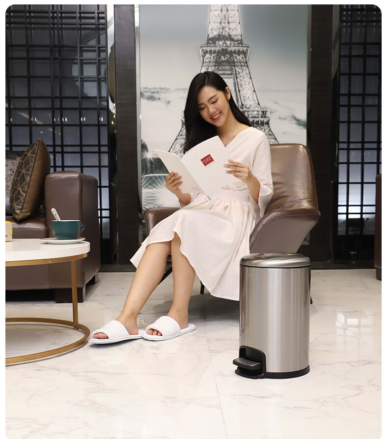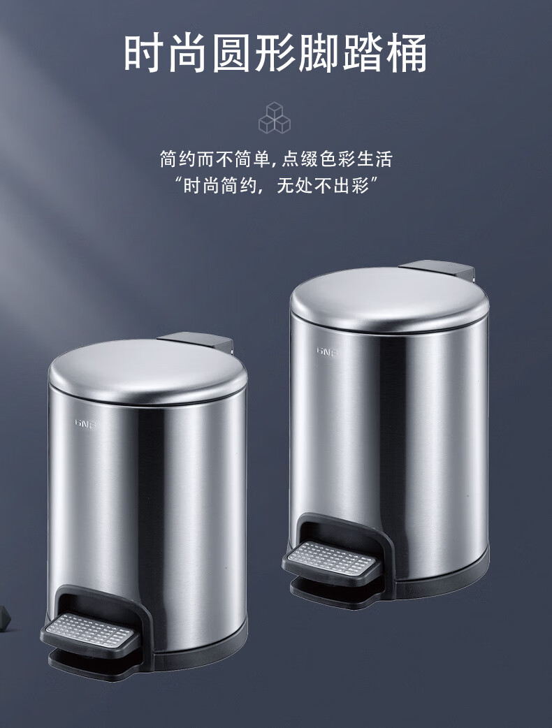 GNF foot-operated stainless steel trash can round company office kitchen hotel room toilet toilet 5 liter sand steel-Y03