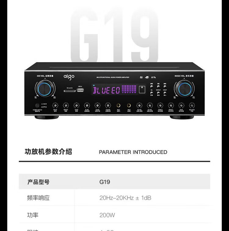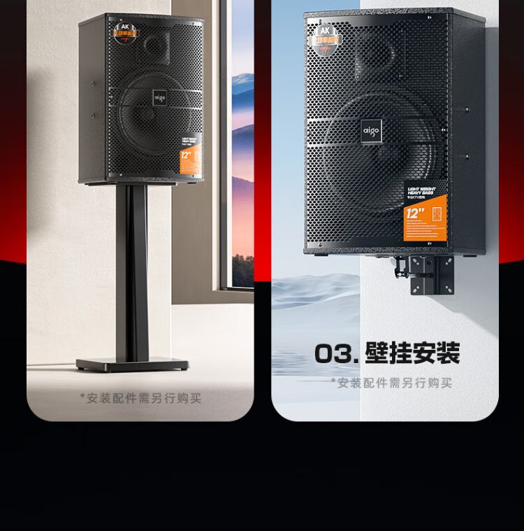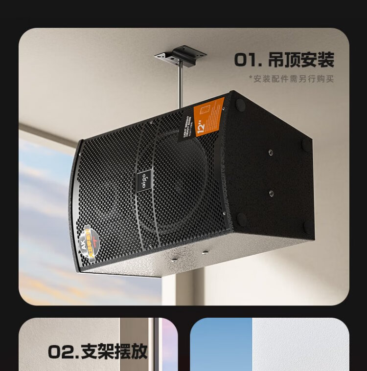 Aigo conference audio set, dedicated speakers for small and medium-sized conference rooms, stage gym classroom wall-mounted card package speakers, 2 10-inch professional speakers + upgraded amplifier