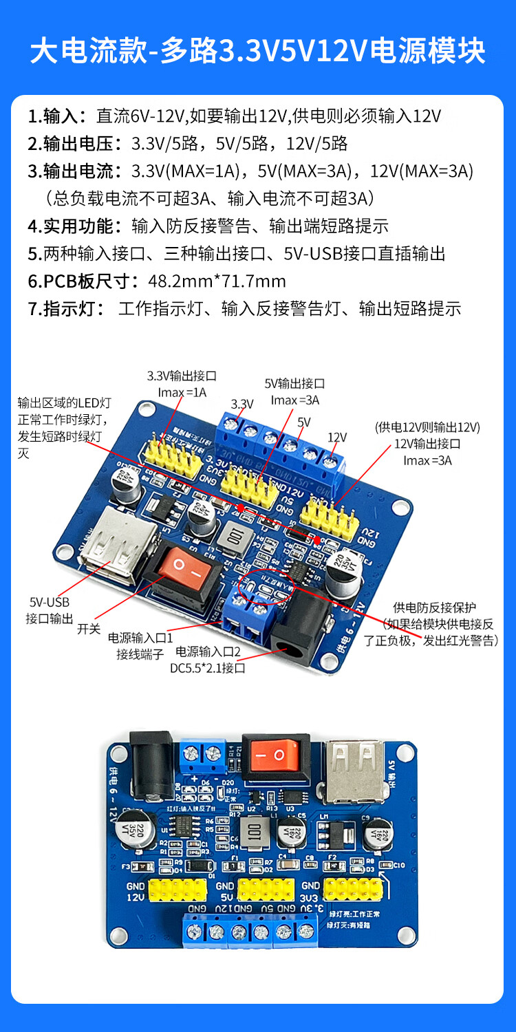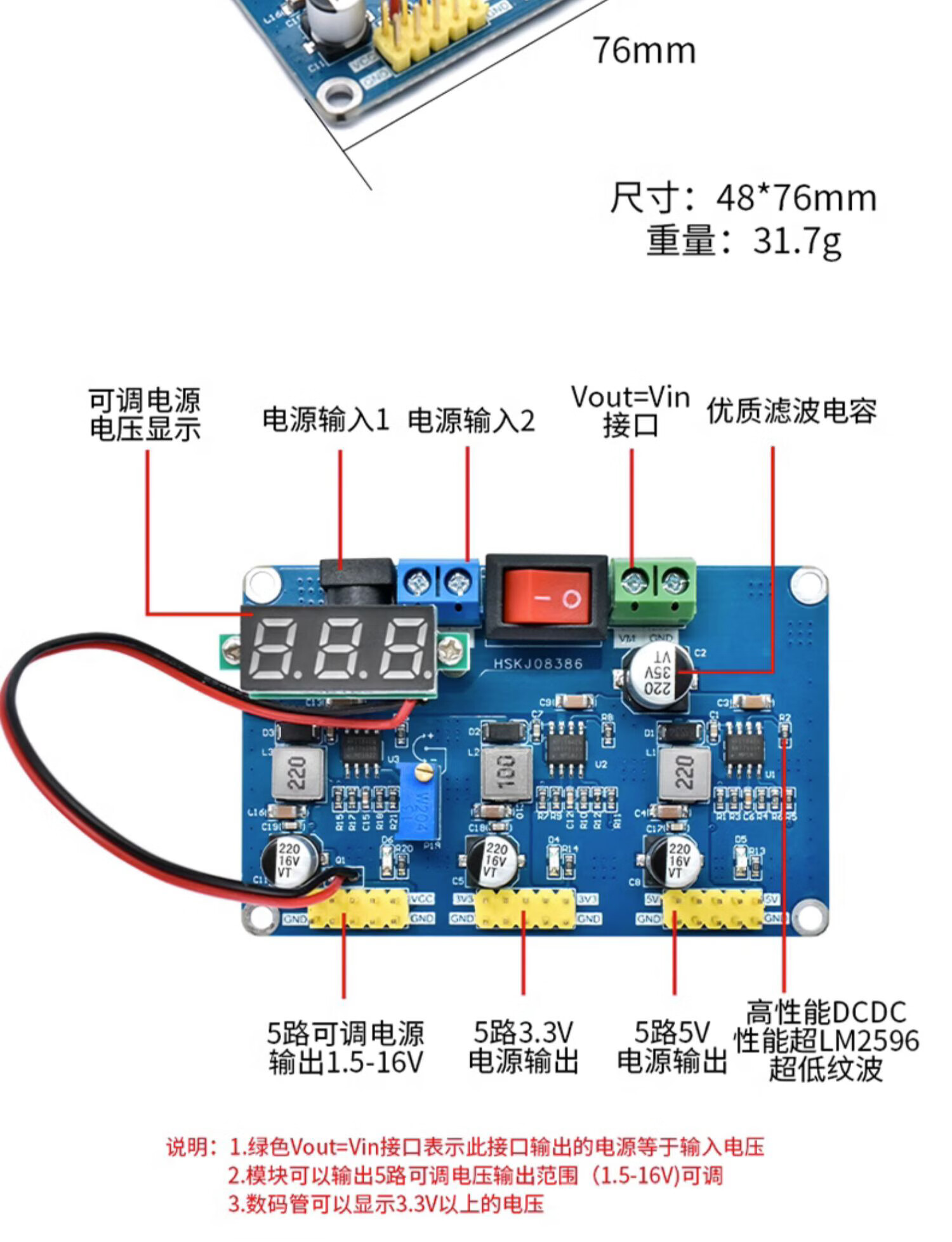 Power supply module 3.3V/5V/12V multiple output DC-DC voltage conversion module voltage board adjustable high current power supply module 1.3V_16V