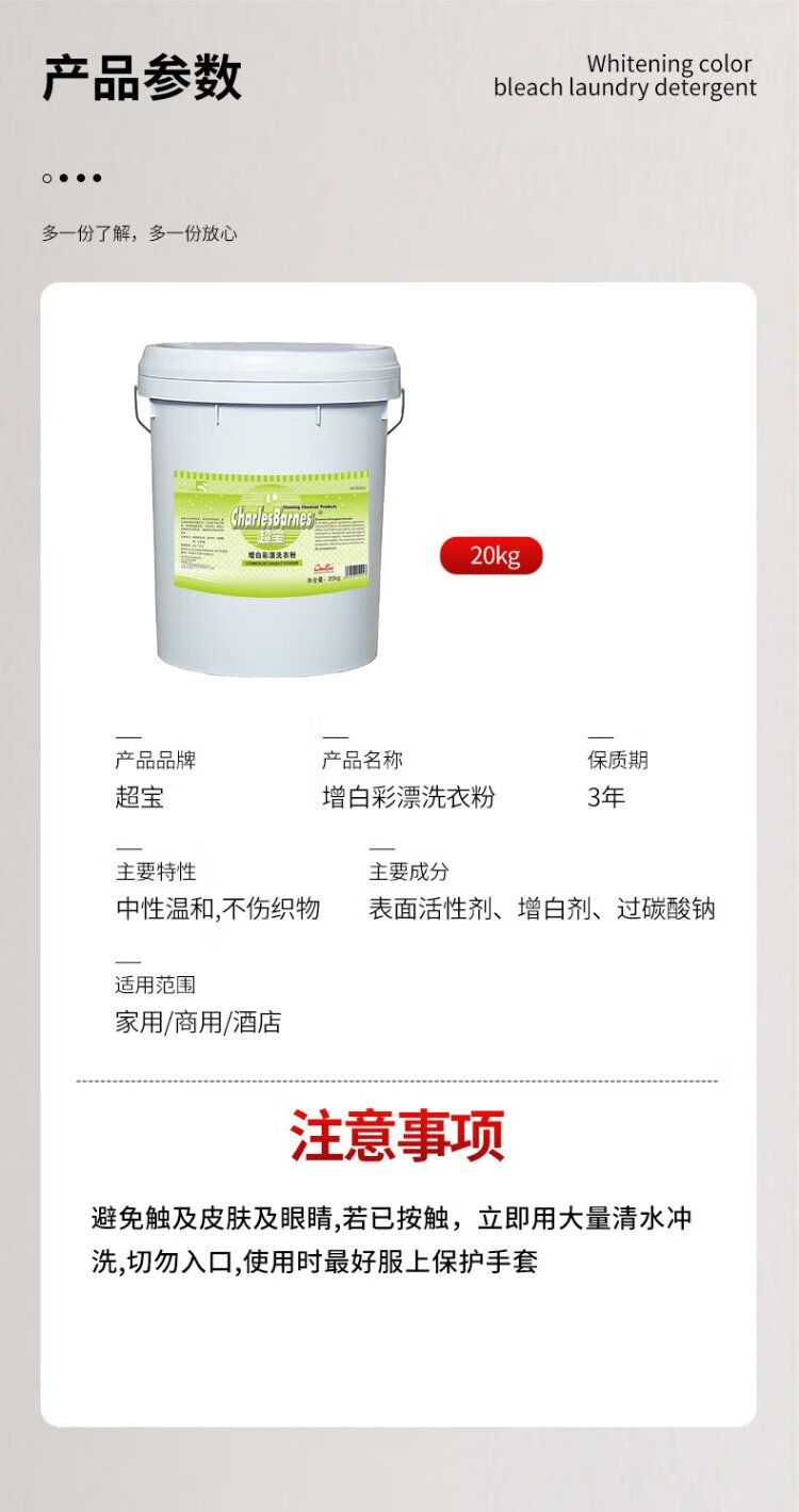 Chaobao whitening color bleaching washing powder 20KG large barrel commercial hotel laundry dry cleaning stain removal yellowing whitening stain removal powder DFG002
