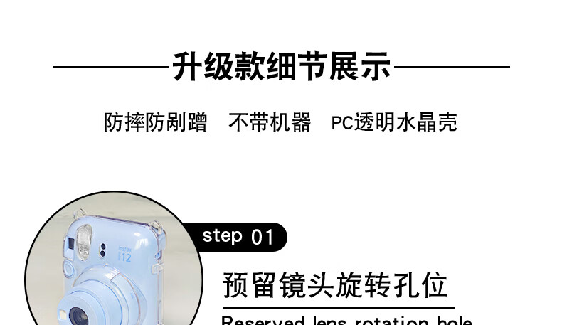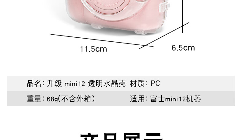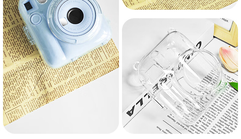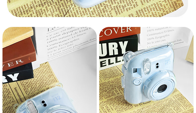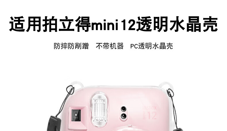 Runzhe is suitable for Fuji Polaroid Mini12 protective case, mini11/SE camera bag, transparent crystal case, silicone case, magic anti-fall and dustproof, adaptable to various scenes, mini12 crystal clear case, free jade hanging dog shoulder strap + sticker