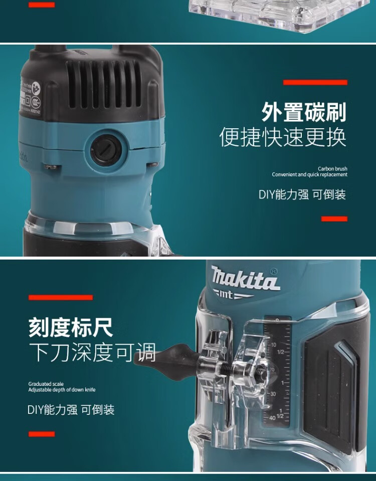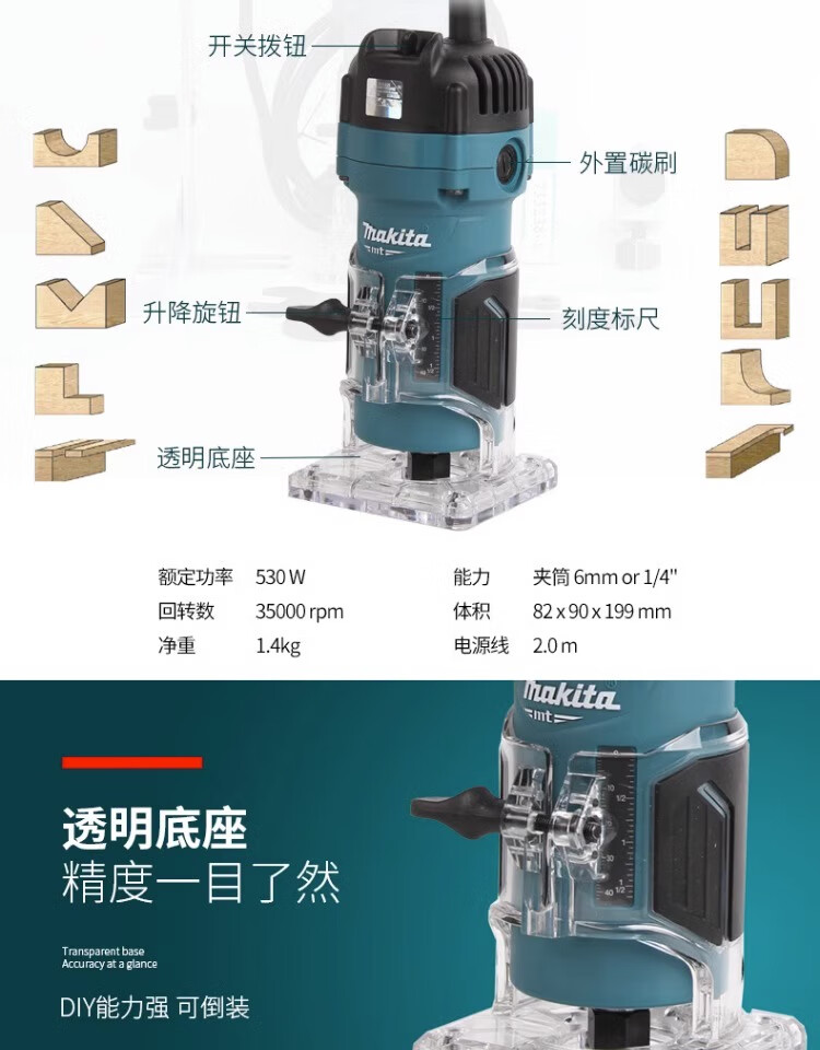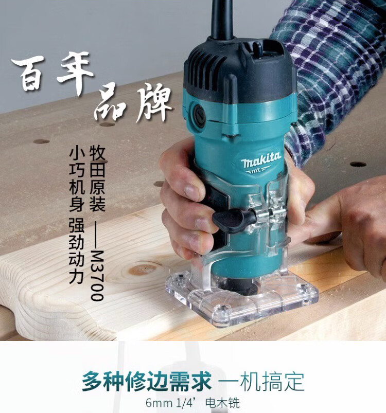 Makita trimming machine M3700B woodworking slotting machine aluminum plastic plate opening 530W small gong machine carving opening bakelite milling M3700B factory standard