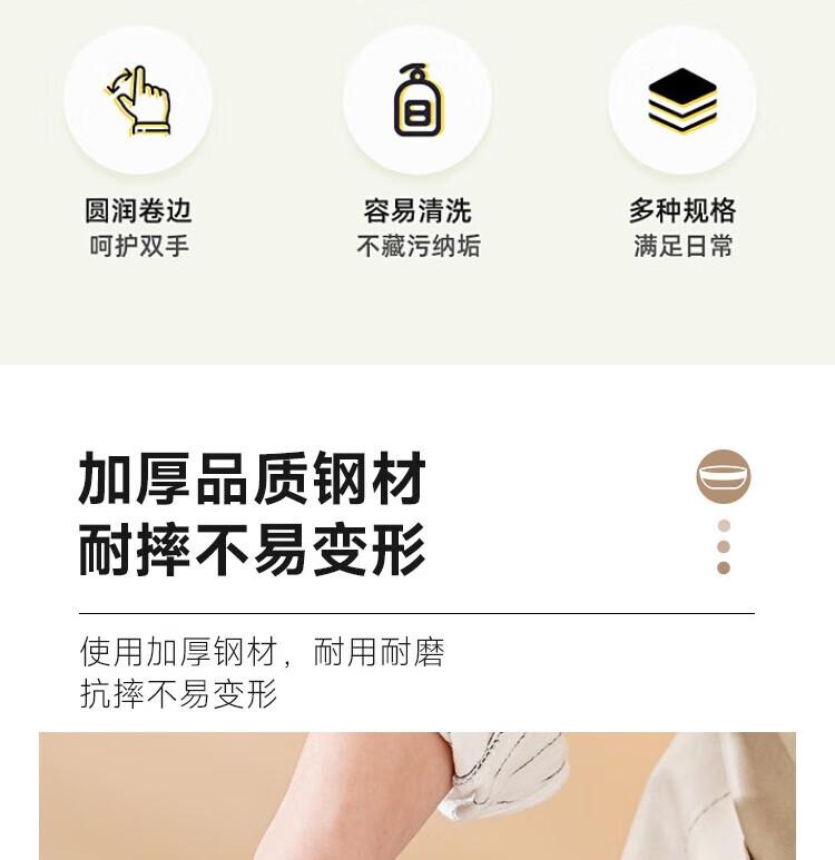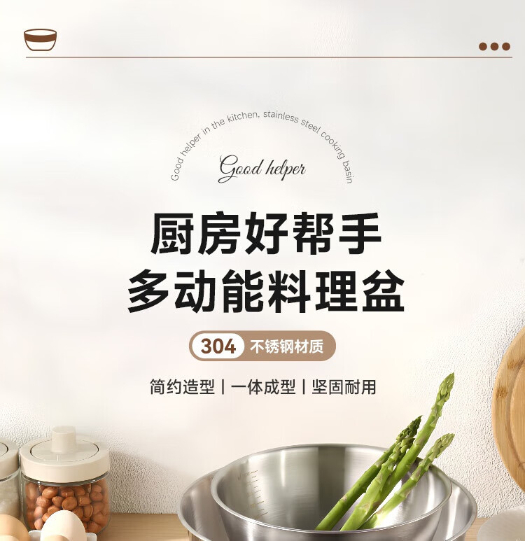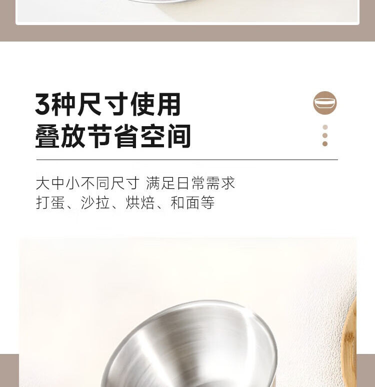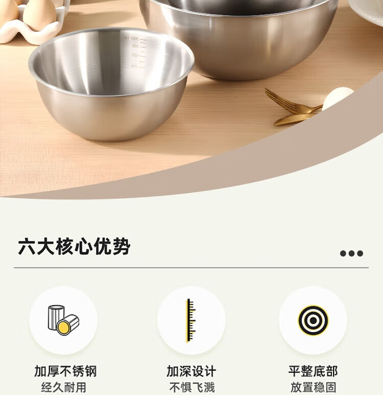 Zhenchuju 304 stainless steel basins, salad basins and basins, enlarged and thickened spice basins, vegetable basins, rice basins, soup bowls, three-piece set and basins, large, medium and small, 3 pieces