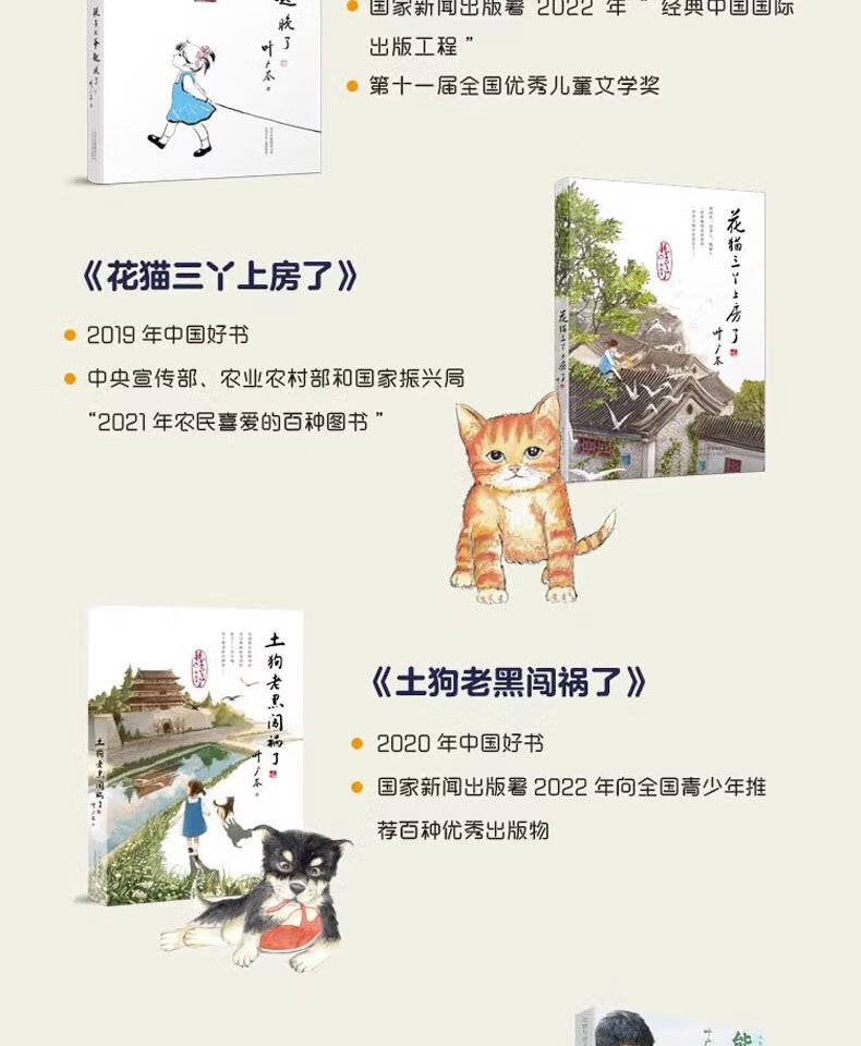 Ye Guangqin's five children's books, the complete collection of children's literature, The Mouse got up late, The Tabby Cat Sanya went to bed, The local dog Lao Hei got into trouble, The Panda Xiaosi, The Monkey Lao Cao, Ye Guangcen, The Story of Yaya the Mouse, a complete set of 3 volumes, Beijing Children's Publishing House