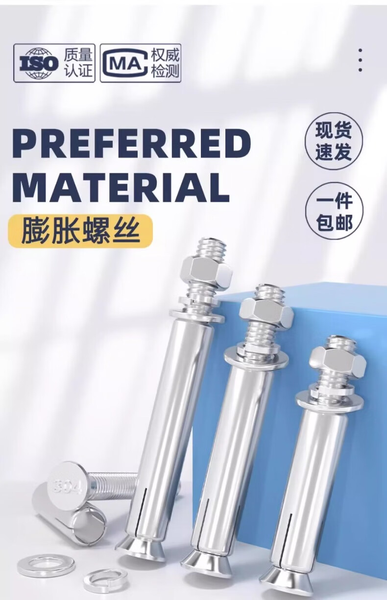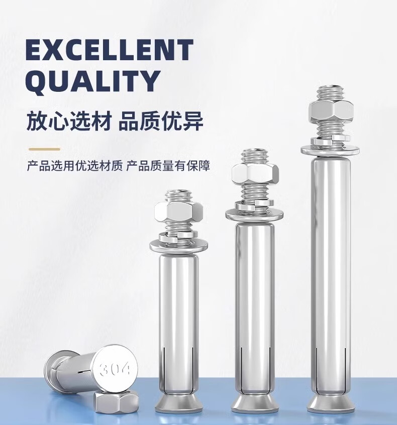 Fengji national standard 304/201/316 stainless steel expansion screw bolt extension expansion pipe nail outer tube M6M8M10 304-M6*60 (5 pieces)